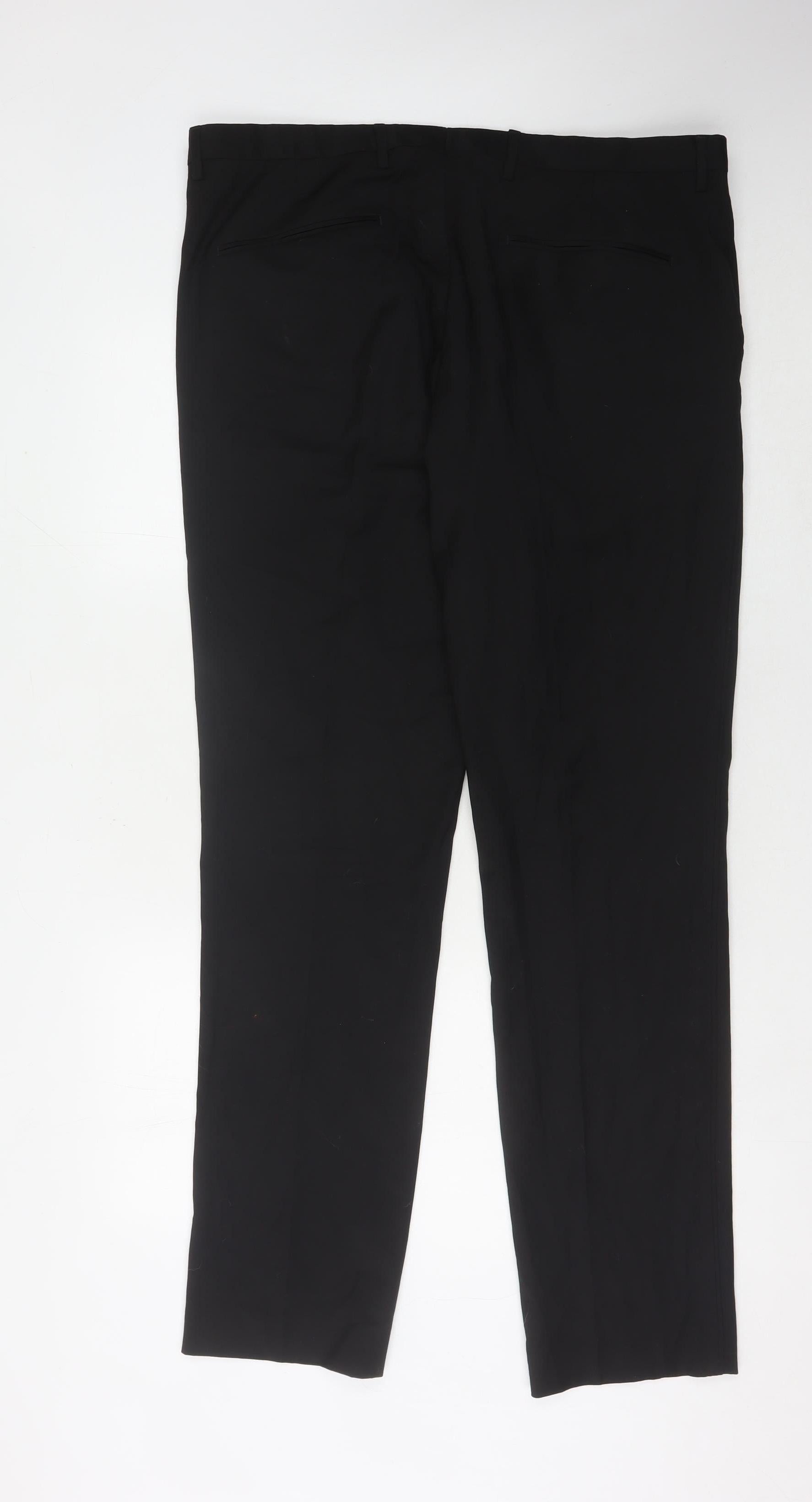 Discover elegance and comfort with these Marks and Spencer men's black trousers, perfect for any stylish wardrobe. Crafted from a premium blend of 94% wool and 6% elastane, these trousers offer a sophisticated look while ensuring flexibility and comfort. They feature a classic pleated front, providing a timeless appeal suitable for both business and formal occasions. With a regular size fit, a 38-inch waist, and a 33-inch inside leg, these trousers are designed for a comfortable and flattering fit. Made in Turkey and adhering to high-quality standards, they are brand new with tags, ensuring maximum quality and hygiene standards. The trousers are professional dry clean only, maintaining their excellent condition for prolonged use. Enhance your wardrobe with these versatile trousers, ideal for important meetings, formal events, or any occasion where making a good impression is essential.