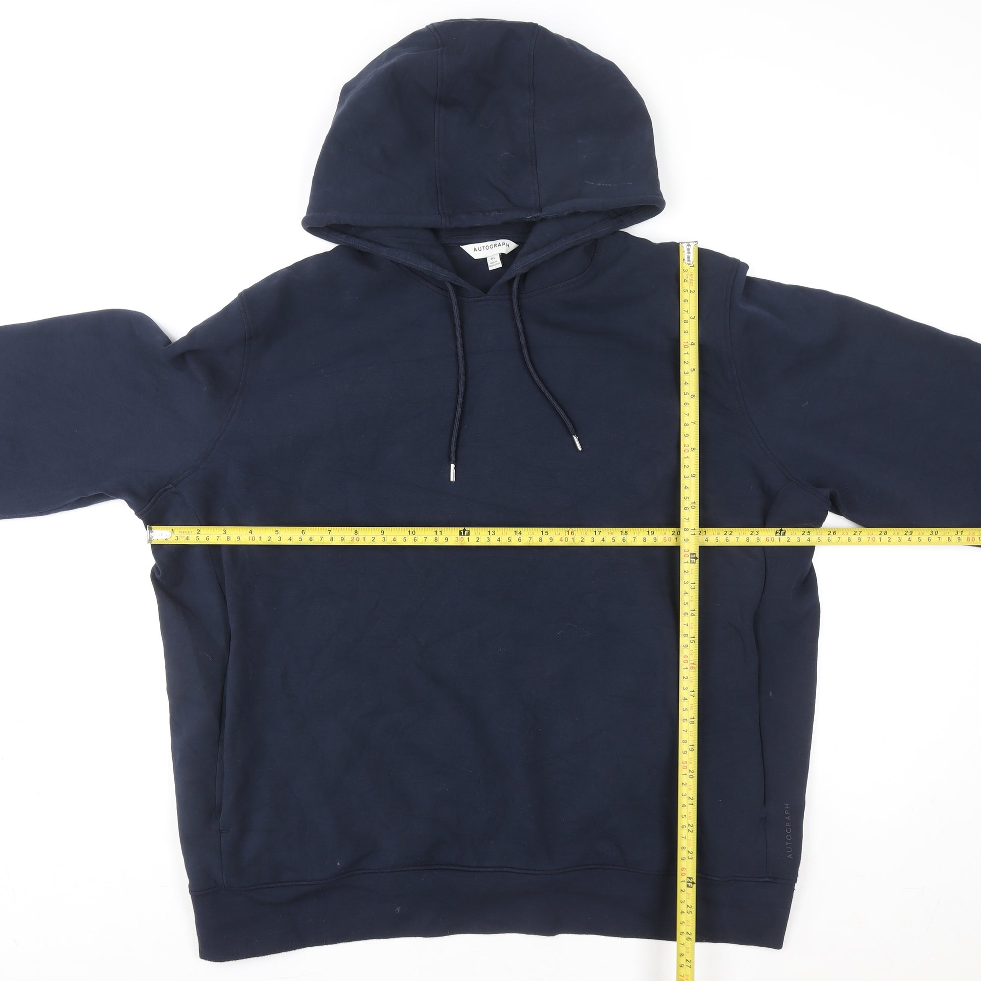 Upgrade your casual wardrobe with this premium Marks and Spencer Autograph men's pullover hoodie in classic navy blue. Designed for ultimate comfort and style, this hoodie offers a relaxed fit in size 3XL, perfect for layering and all-season wear. Crafted from a soft, durable blend of cotton and polyester fleece, it provides excellent warmth while staying breathable for everyday use. The hood features a drawstring closure for adjustable comfort, while the ribbed cuffs and hem give the hoodie a structured finish that maintains its shape wash after wash. This versatile piece is ideal for pairing with jeans, joggers, or shorts for an effortless, laid-back look. Its minimalist design and quality construction ensure it remains a timeless staple in any wardrobe, whether worn for lounging, outdoor walks, or casual outings. The cotton-rich fabric delivers natural softness and comfort against the skin, while the durable fibres help it retain its appearance and colour over time. Marks and Spencer’s Autograph line is known for combining classic British style with superior craftsmanship, and this hoodie is no exception. Its understated navy shade complements any outfit, and the practical kangaroo pocket adds both functionality and comfort. Ideal for cooler evenings or layering under a jacket during winter months, this hoodie balances practicality with refined simplicity. In excellent used condition with only minimal signs of wear, this quality piece still looks and feels fantastic. Machine washable and easy to care for, it’s perfect for men who appreciate reliable, stylish essentials. Add this navy 3XL Marks and Spencer hoodie to your collection for a touch of everyday sophistication at an exceptional value.