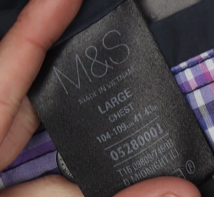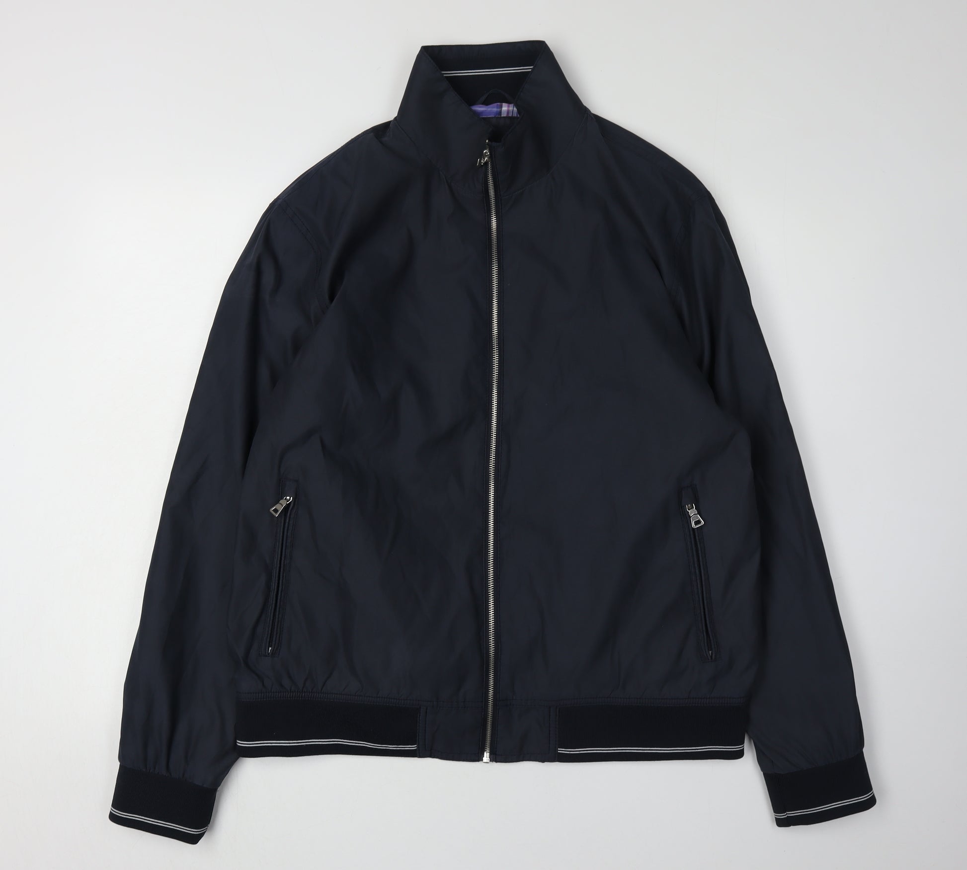 Elevate your casual wardrobe with this Marks and Spencer men's basic jacket, perfect for a versatile lifestyle. Crafted in a stunning shade of blue, this jacket features a regular fit, making it ideal for everyday outings. With its stand-up collar and full zip closure, it effortlessly combines style with practicality. This lightweight jacket is made from durable polyester and polyamide, ensuring both comfort and longevity. The jacket includes practical zipped pockets, providing convenient storage for your essentials. A chic, understated design paired with quality materials makes this a must-have for the modern man. Its machine washable fabric allows for easy care, while the jacket's excellent condition ensures you look your best each time you wear it. Whether you're off to a casual outing or simply enjoying a relaxed day, this jacket complements any outfit effortlessly. Grab this versatile piece today and step out in style!
