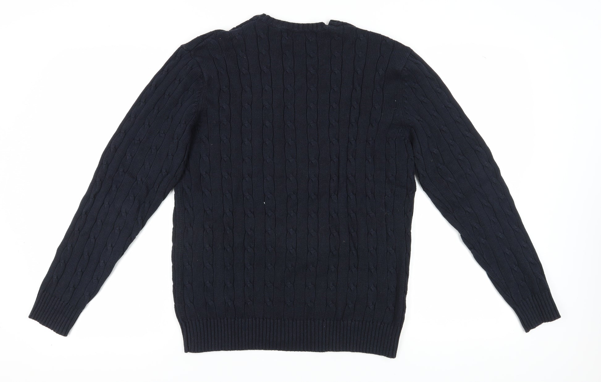 Marks and Spencer Men's Blue Cotton Crew Neck Jumper L