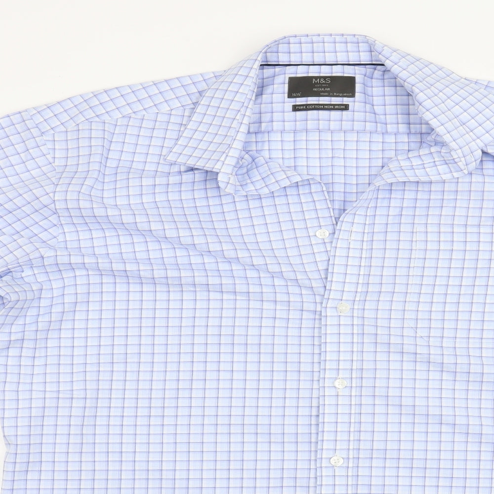 Marks and Spencer Mens Pink Check Polyester Button-Up Size 16.5 Collared Button