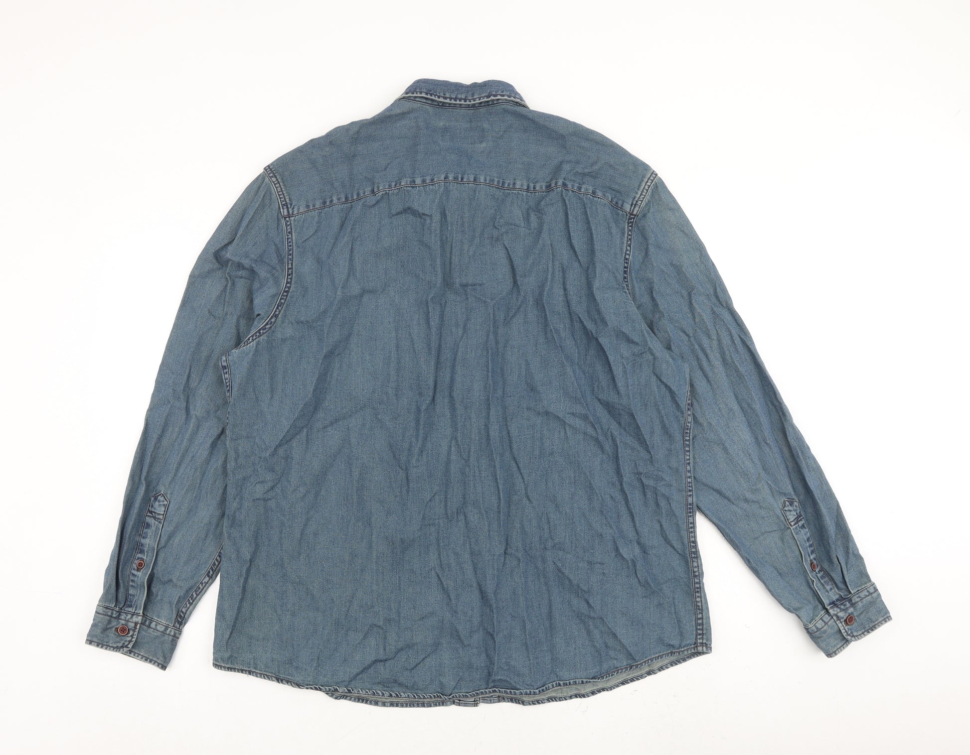 Mens Blue Cotton Button-Up Size XL Collared Button