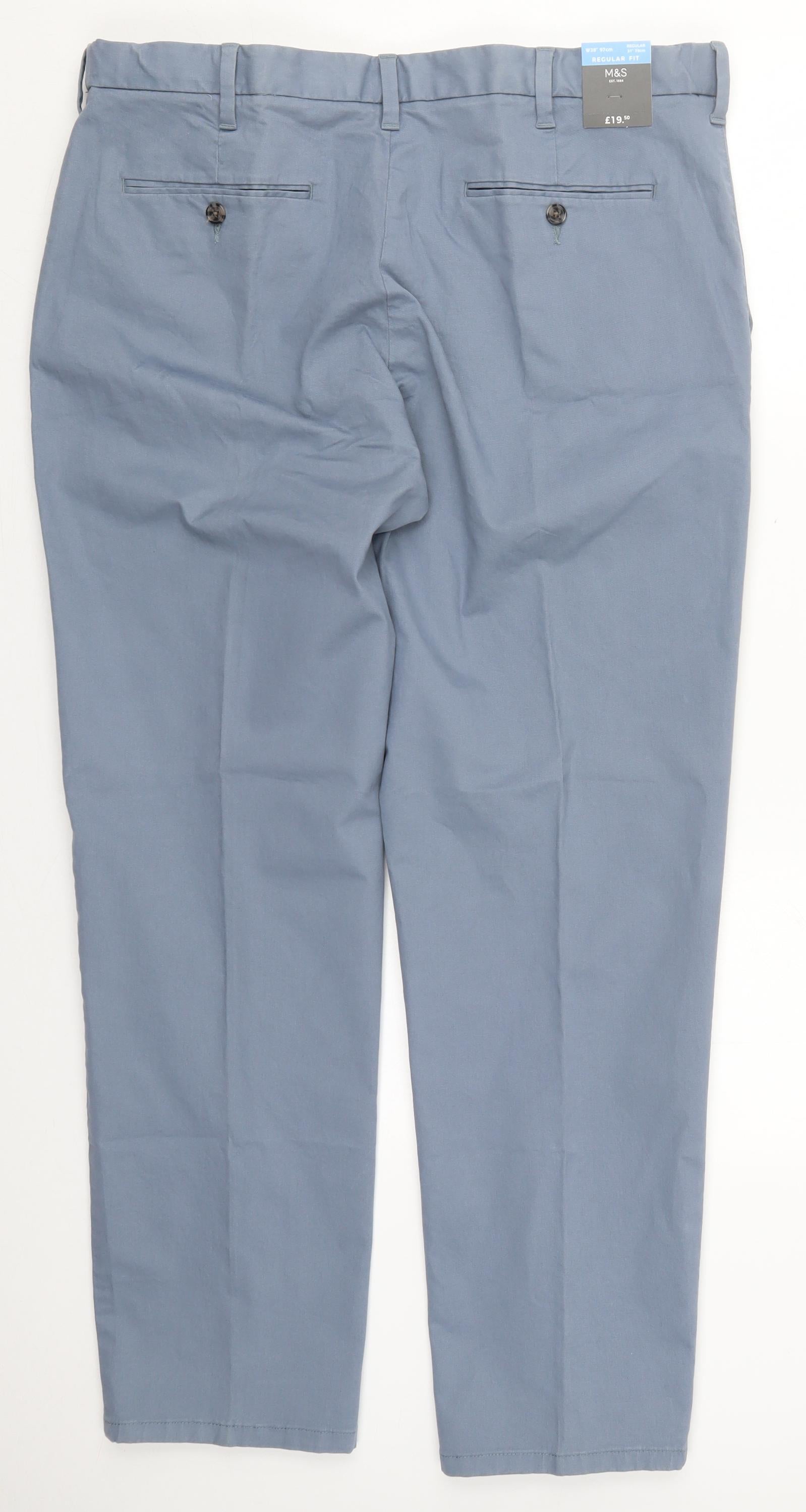 Mens Blue Cotton Trousers Size 38 L31 in Regular Button
