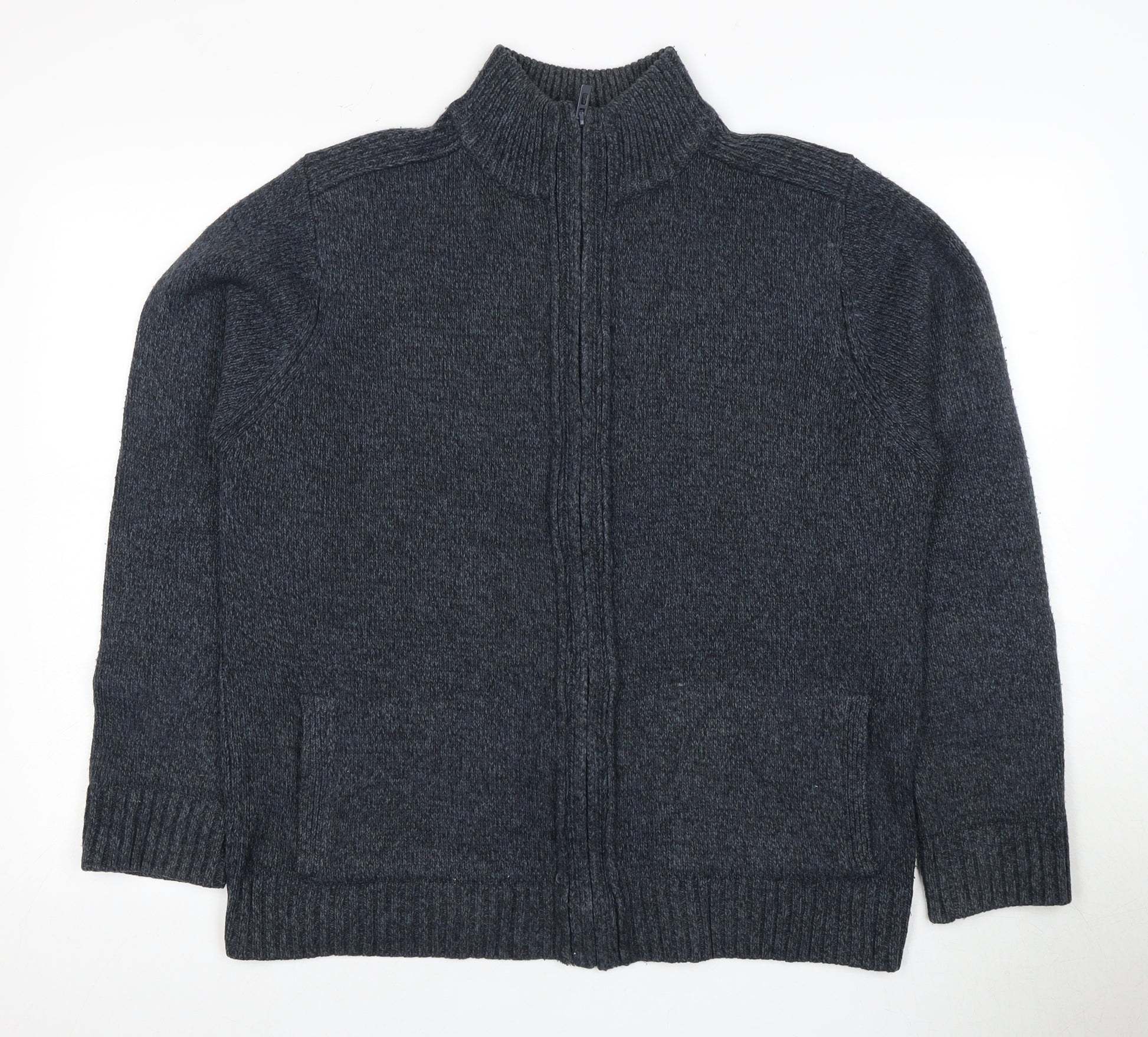 Embrace the colder months in style with this Marks and Spencer Men's Full Zip Jumper, perfect for an effortlessly fashionable layer. Crafted in a versatile blue hue, this jumper features a high neckline for added warmth and style. Its classic design makes it an ideal piece for casual autumn and winter outings. The jumper is constructed from 100% acrylic knit fabric, ensuring comfort and easy care with machine washable convenience. The full zip front provides ease of wear and versatility, while long sleeves keep you snug against the chill. Ideal for layering over t-shirts or shirts, this jumper offers a relaxed fit suitable for various occasions. Designed for regular wear, its simple yet elegant pattern-free look adds sophistication to any outfit. Whether you're heading for a casual day out or lounging at home, this jumper is a wardrobe essential. The excellent condition ensures you'll receive a piece that looks good as new, ready to complement your collection. Pair this jumper with jeans and trainers for a laid-back look or dress it up with smart trousers for a casual yet polished style. The Marks and Spencer Men’s Full Zip Jumper combines quality and design, making it a must-have for every fashion-forward man.
