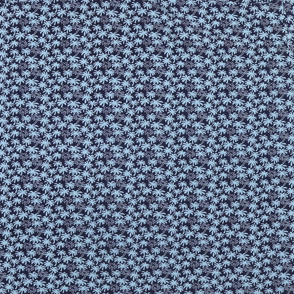Mens Blue Geometric Cotton Button-Up Size 3XL Collared Button