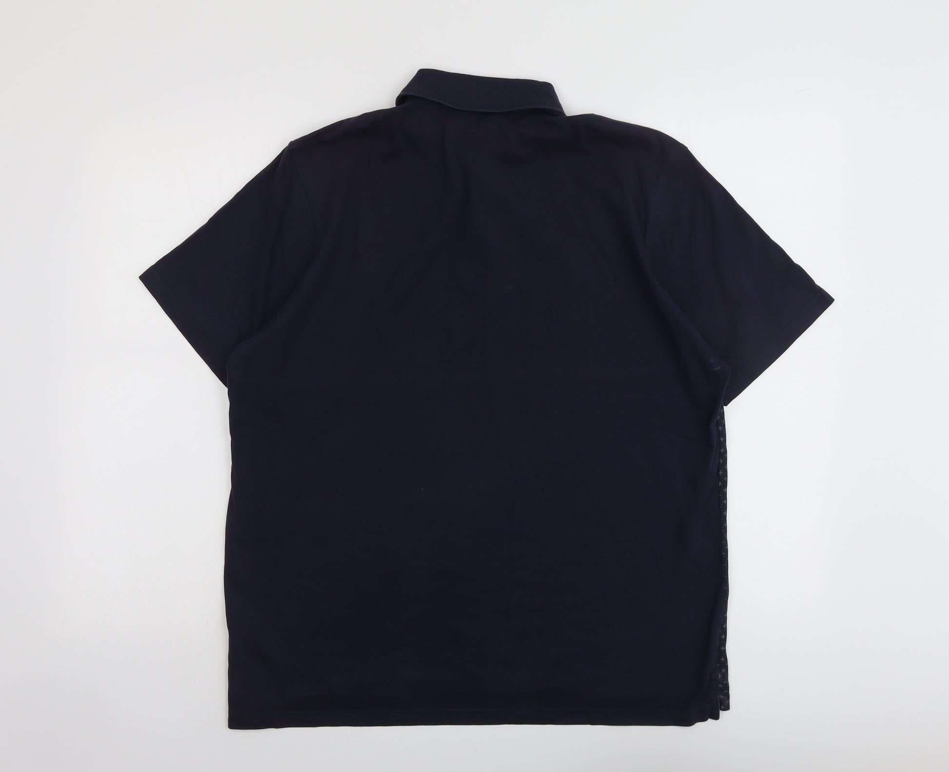 Mens Blue Geometric Cotton Polo Size L Collared Button