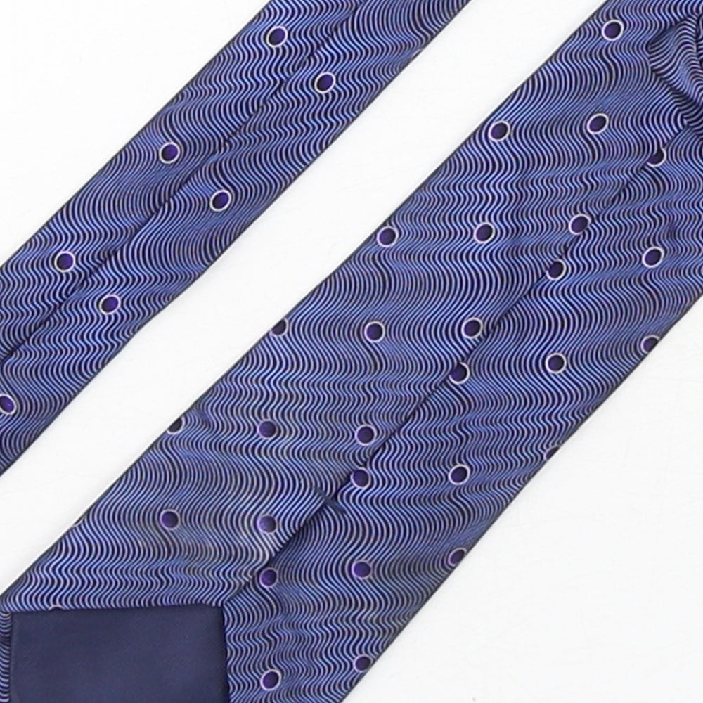 Mens Blue Geometric Silk Pointed Tie One Size