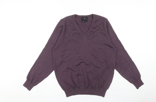 Marks and Spencer Men's Blue V-Neck Cotton Jumper M Regular Fit