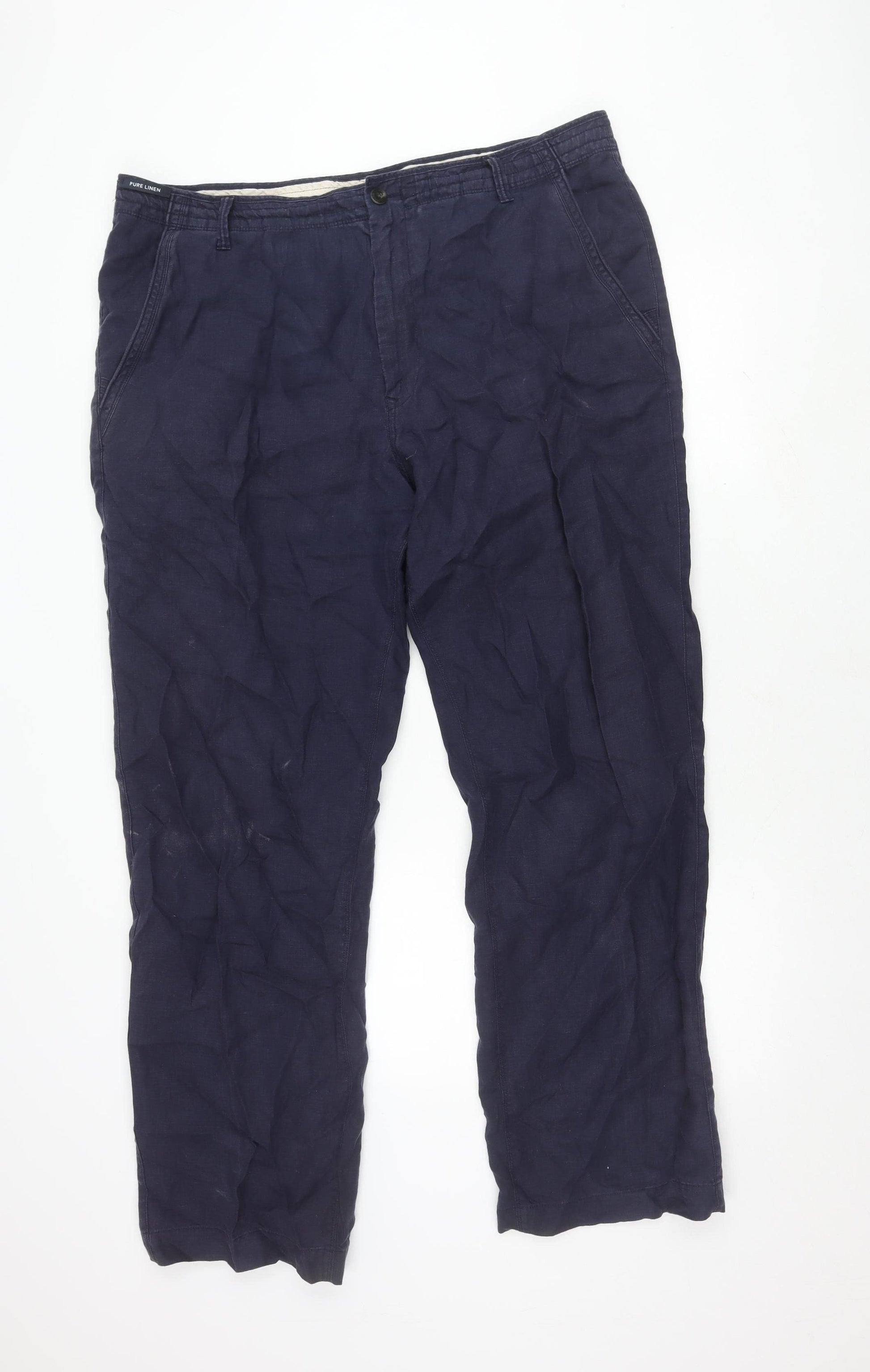 Elevate your summer wardrobe with these stylish Marks and Spencer men's trousers. Crafted from 100% linen, these blue trousers offer a perfect blend of comfort and sophistication for any casual occasion. Designed for a regular fit with a mid-rise waist, these trousers ensure a flattering silhouette. They feature a 40-inch waist and 33-inch inside leg, making them ideal for a comfortable yet refined look.The lightweight fabric makes these trousers exceptionally breathable during warmer months, while the cargo pocket adds practical functionality without compromising on style. The flat front and straight leg design provide a classic and timeless appeal, easily paired with your favourite shirts for a relaxed yet chic ensemble.In very good condition, these trousers show slight signs of wear, adding a touch of character. Machine washable and featuring a no-pattern, minimalist design, they are perfect for those who appreciate understated elegance. Whether you're heading to a casual outing or a summer event, these trousers are a versatile addition to your fashion repertoire.Don't miss out on these classic blue trousers, perfect for adding a touch of class to your everyday look. Priced competitively at £12.00, these Marks and Spencer trousers are a bargain for those seeking quality and style in equal measure.
