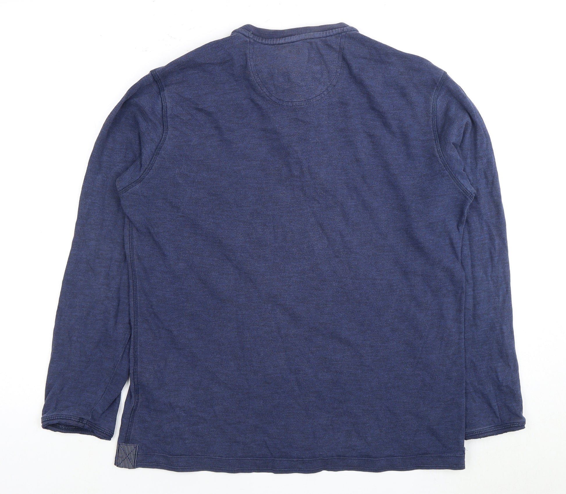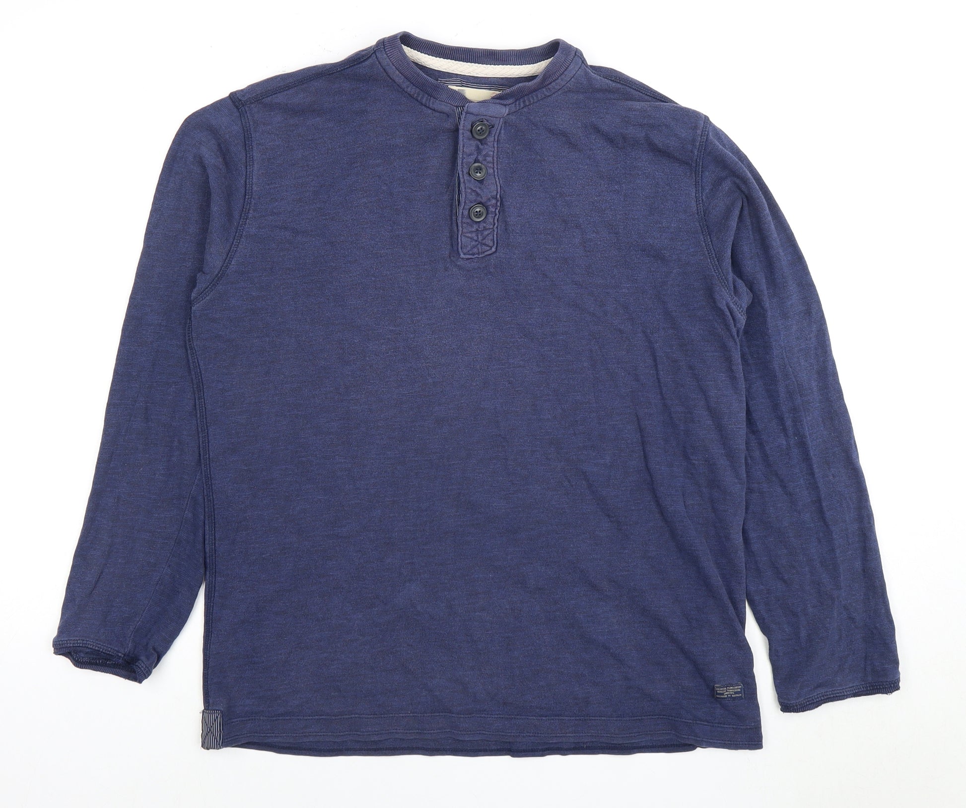 This Marks and Spencer Men's Polo in a classic medium size offers a timeless style for your everyday wardrobe. Crafted in a versatile blue cotton fabric, it's ideal for casual outings or just relaxing at home. The solid pattern enhances its simplicity while the long sleeves and Henley neckline with button accents add a touch of detail. It’s machine washable for easy care, making it perfect for all seasons. Though it shows minor signs of wear, it’s in excellent condition and sure to be a reliable addition to your collection.