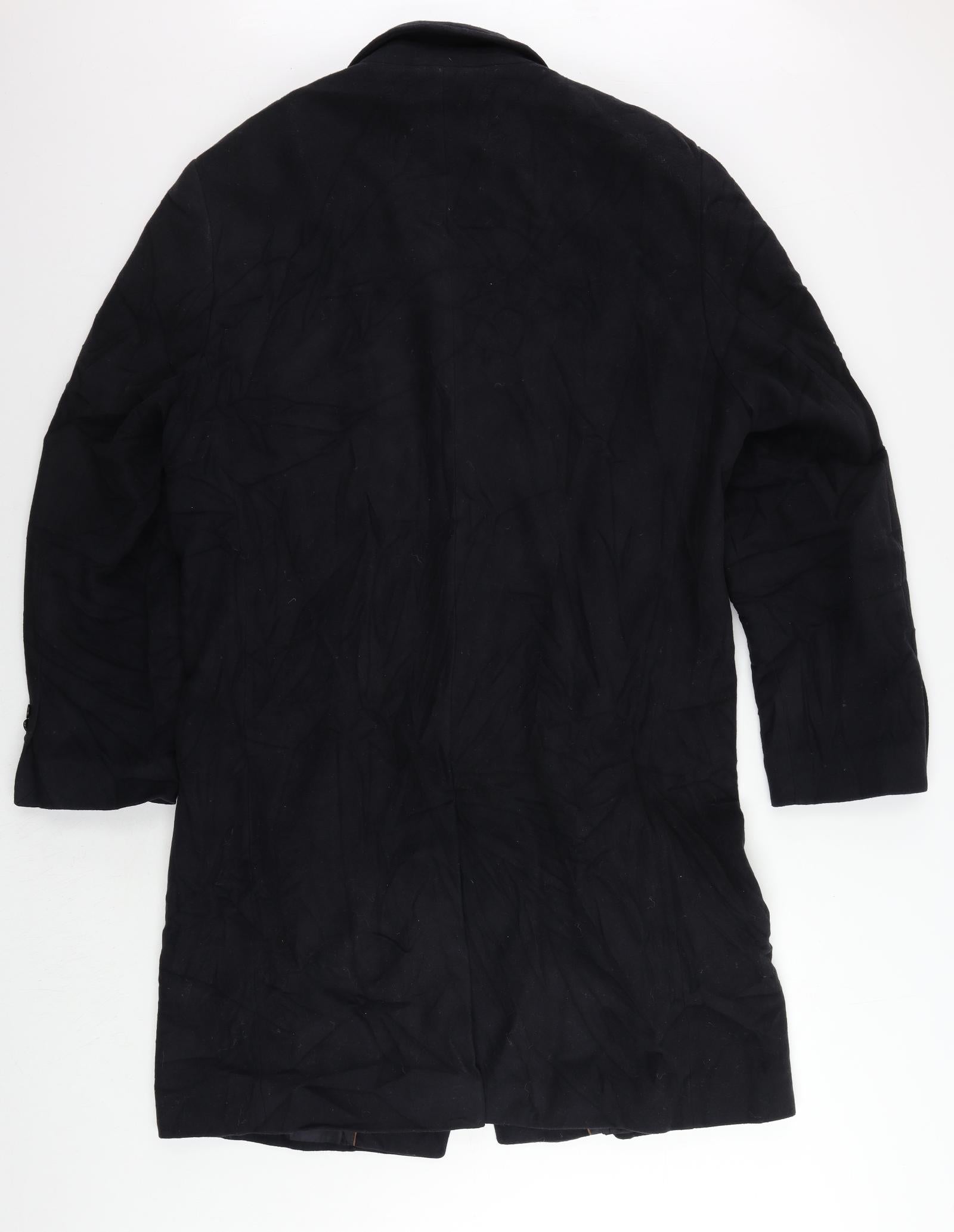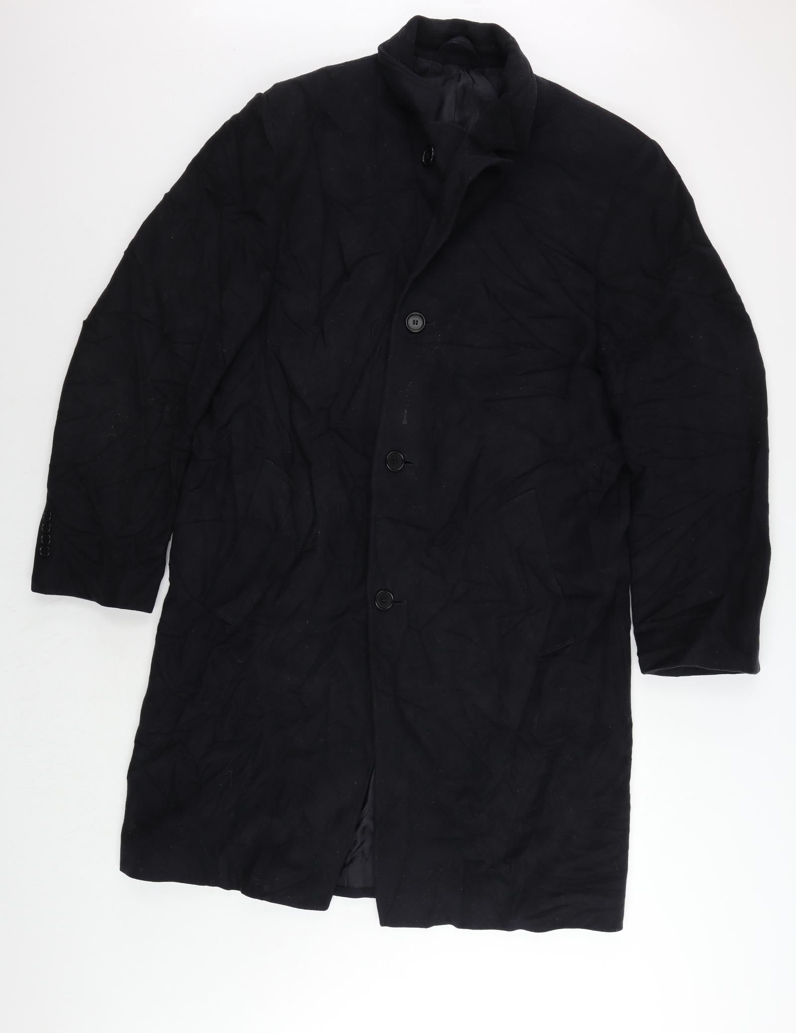 Marks and Spencer Men Navy Wool Overcoat Medium Classic Buttoned Lined