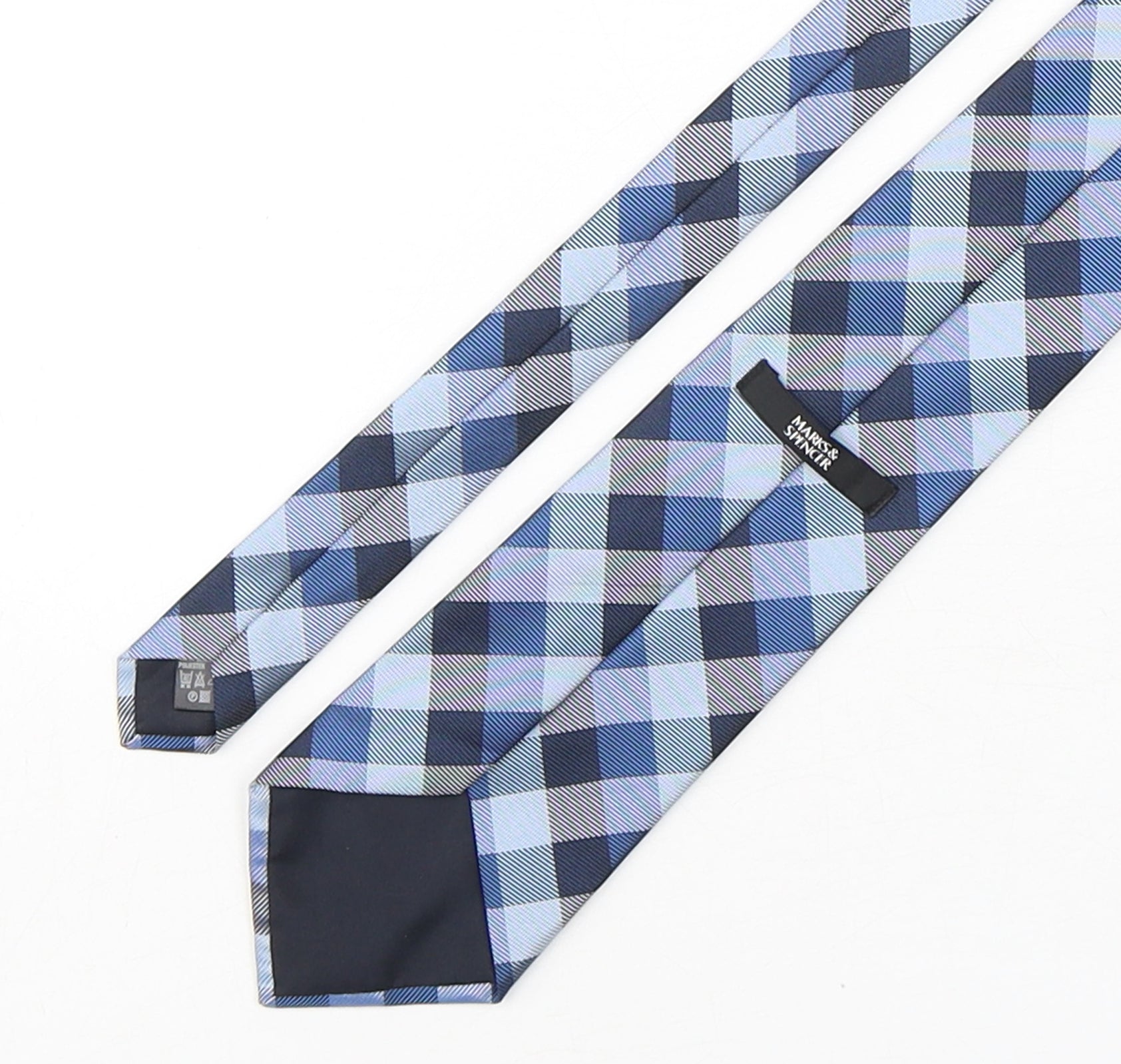 Mens Blue Plaids & Checks Polyester Pointed Tie One Size