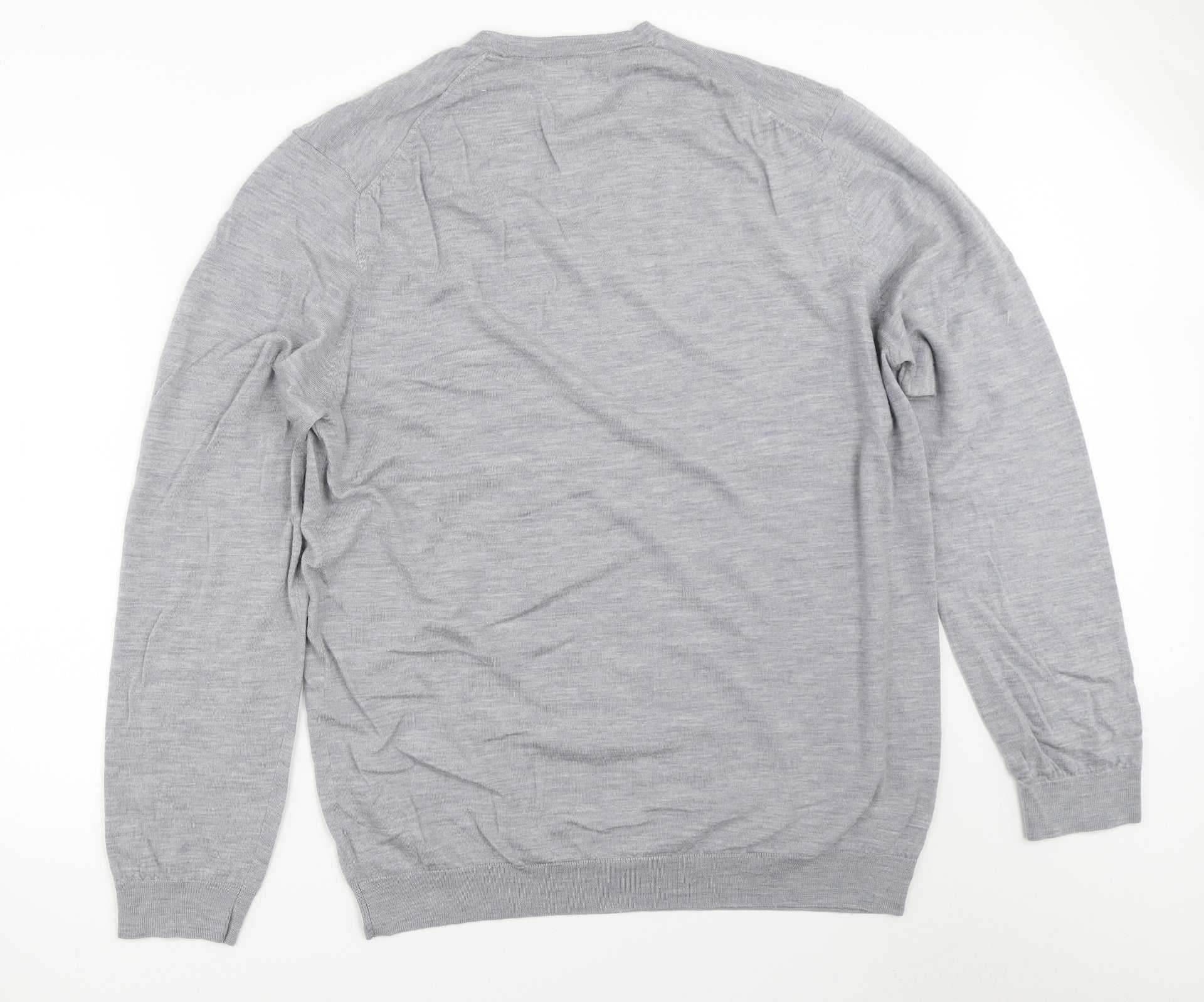 Marks and Spencer Men's Grey 2XL Cotton V-Neck Jumper