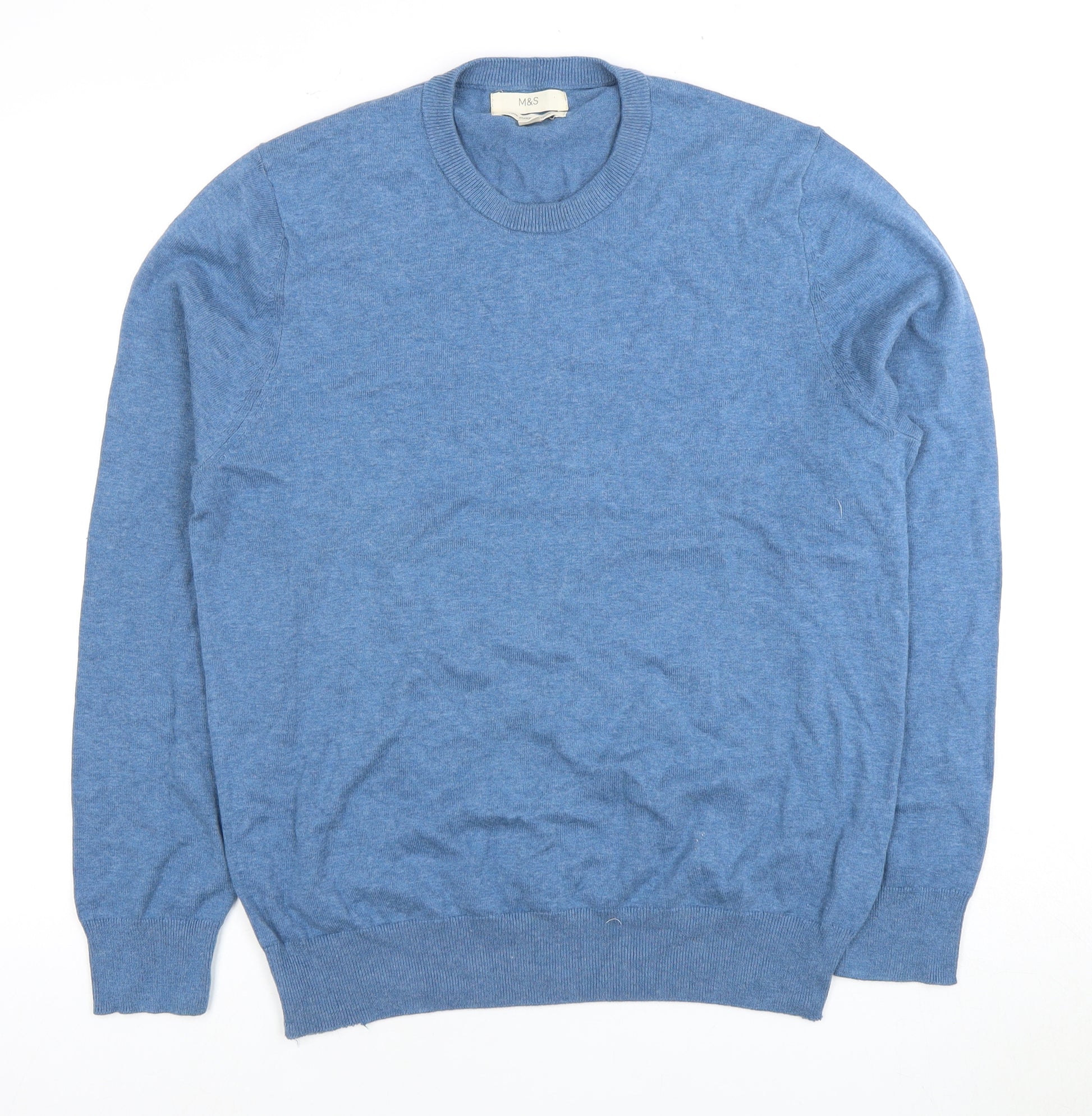 Elevate your wardrobe with this classic Marks and Spencer men's pullover jumper, exquisitely crafted from 100% fine pure cotton. This blue jumper in size L provides a perfect blend of comfort and style, making it an ideal choice for everyday casual wear. Featuring a crew neck design and soft knit fabric, this jumper ensures a cosy feel with a polished appearance. Its regular fit and long sleeves offer a timeless silhouette suitable for all seasons, easily pairing with various outfits for a versatile addition to your collection. The jumper's rich blue hue adds a vibrant touch to your attire, while the durable cotton material promises lasting quality and ease of care, with the convenience of being machine washable. Although it shows minor wear, its excellent condition suggests it has been well-maintained. Ideal for casual occasions, this jumper is set to enhance your style effortlessly. Whether you’re heading out or relaxing at home, this Marks and Spencer jumper ensures you remain comfortable and fashionable. Grab this timeless piece today and enjoy the blend of classic design and modern comfort.