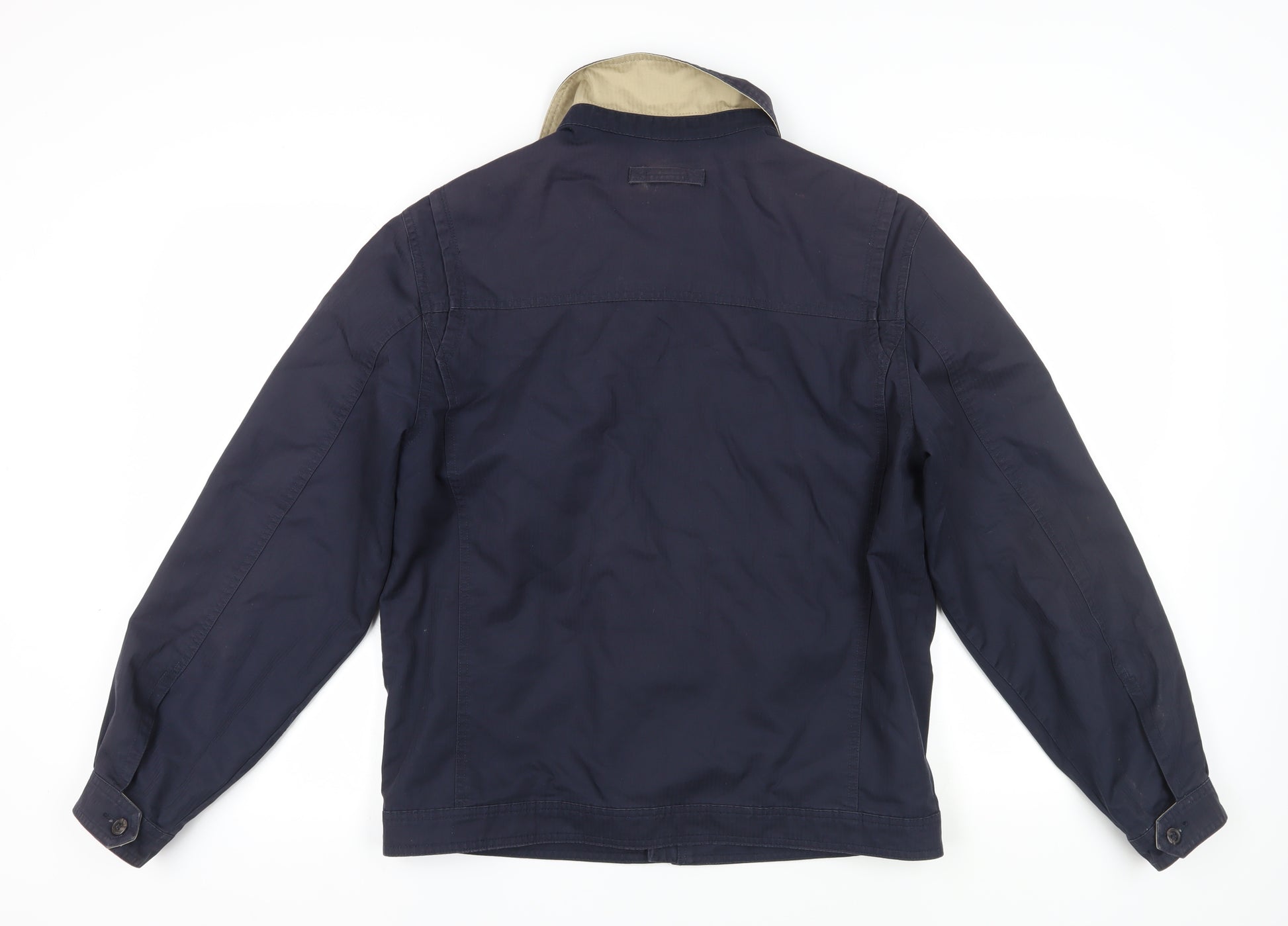 Explore classic style with this navy blue jacket from Marks and Spencer. Expertly crafted from 100% cotton, this breathable and water-resistant jacket is ideal for those unpredictable weather days, ensuring comfort and style throughout the seasons. Designed for men, it features a zip closure, with a regular fit that suits a variety of occasions, whether you're heading to a casual outing or a more relaxed work environment. The lining is a comfortable blend of cotton and polyester, adding an extra layer of softness against the skin. Embrace the timeless appeal of its spread collar, highlighted by its understated, no-pattern design that pairs beautifully with any outfit. Experience the perfect combination of style and function with features such as stormwear technology, keeping you protected in light rain, while still maintaining a lightweight feel. Machine washable for easy care, this jacket is a go-to piece in any wardrobe.