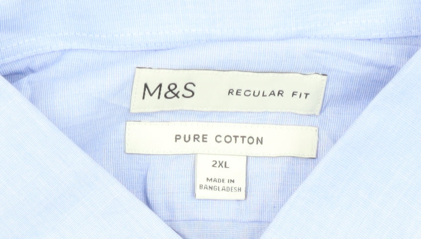 Marks and Spencer Men's Blue Regular Fit 2XL Long Sleeve Cotton Dress Shirt