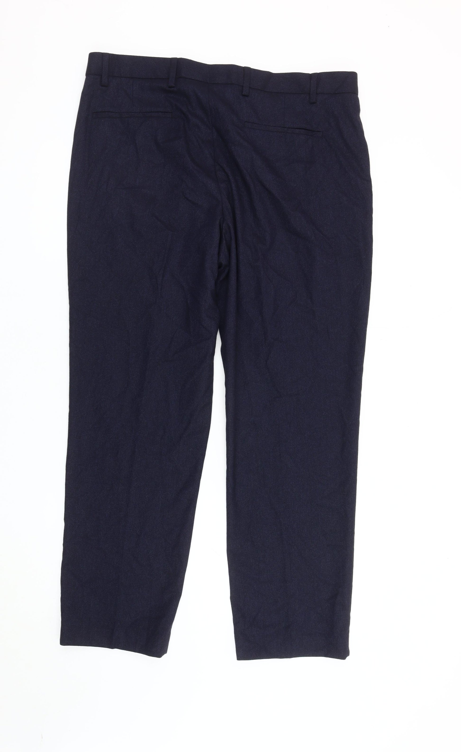 Elevate your wardrobe with these elegant Marks and Spencer blue trousers, designed specifically for the modern man who values both style and comfort. Perfect for workwear and suitable across the seasons, these trousers feature a regular fit for a classic silhouette that’s versatile enough to complement your business attire or smart-casual gatherings. Made with a thoughtful blend of high-quality polyester, viscose, and elastane, these trousers promise durability while offering a comfortable stretch. With a practical mid-rise waist and a neatly tailored flat front, these trousers ensure a graceful fit that sits well on the body without any fuss. The timeless blue colour seamlessly matches your outfits across a variety of occasions, making them an essential addition to every wardrobe. Care for them is straightforward as they are machine washable, sustaining the quality and ensuring easier upkeep. Adorned with slash pockets for convenience, the trousers close securely with a zip closure. Whether you're prepping for a day at the office or gearing up for an evening even, these trousers are your go-to choice. Add sophistication to your collection now with these outstanding Marks and Spencer trousers.
