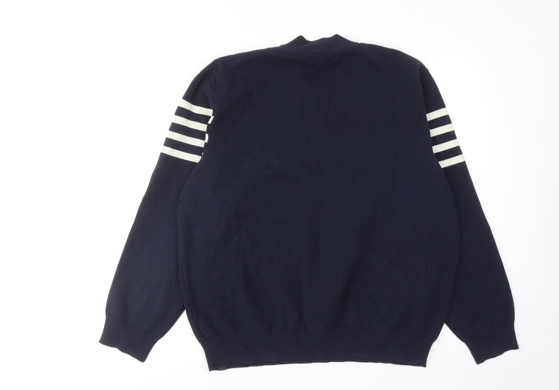 Mens Blue Round Neck Polyester Pullover Jumper Size XL Long Sleeve - Stripe Detail