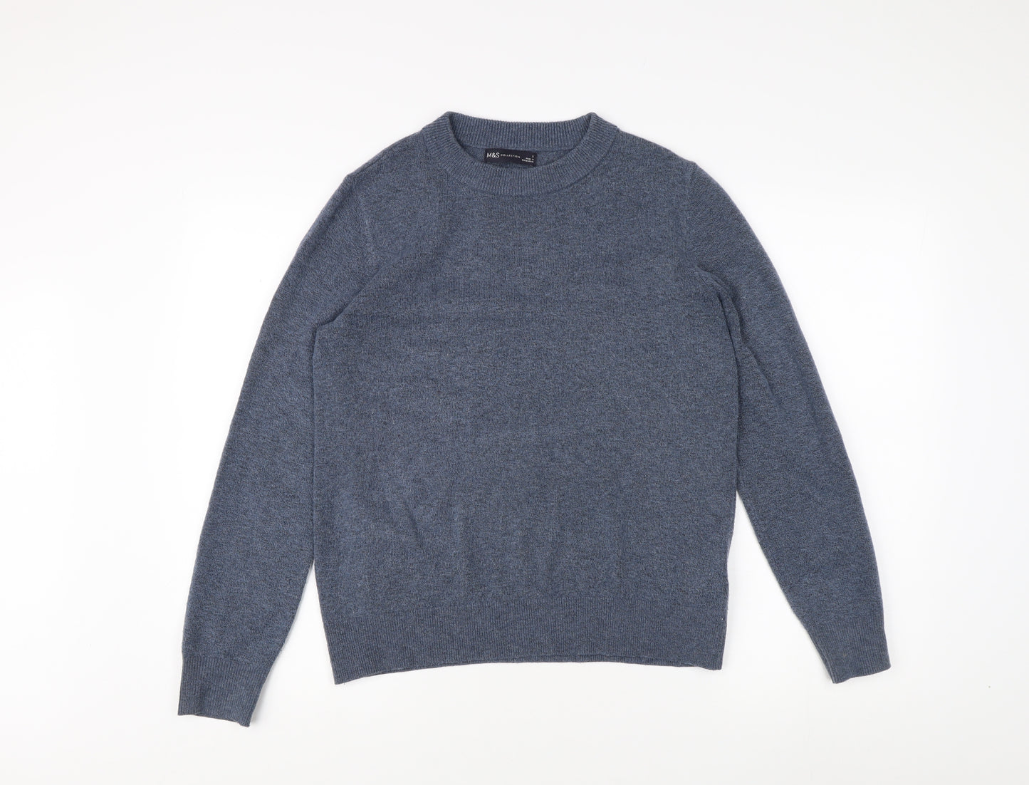 Elevate your casual wardrobe with this Marks and Spencer Men's Jumper, perfect for any season. Crafted from a luxurious blend of polyester, acrylic, wool, and elastane, this blue pullover offers comfort and durability. The regular fit and crew neck design provide a classic look, making it a versatile addition to your collection. Its machine washable feature ensures easy care and maintenance. Suitable for casual occasions, its plain pattern allows for effortless styling with various outfits, whether paired with jeans for a relaxed day out or chinos for a more refined appearance. This jumper is available in size S, made to fit comfortably while retaining shape. Enjoy the quality and style of Marks and Spencer with this essential piece, designed to meet your fashion needs with an emphasis on comfort and longevity.