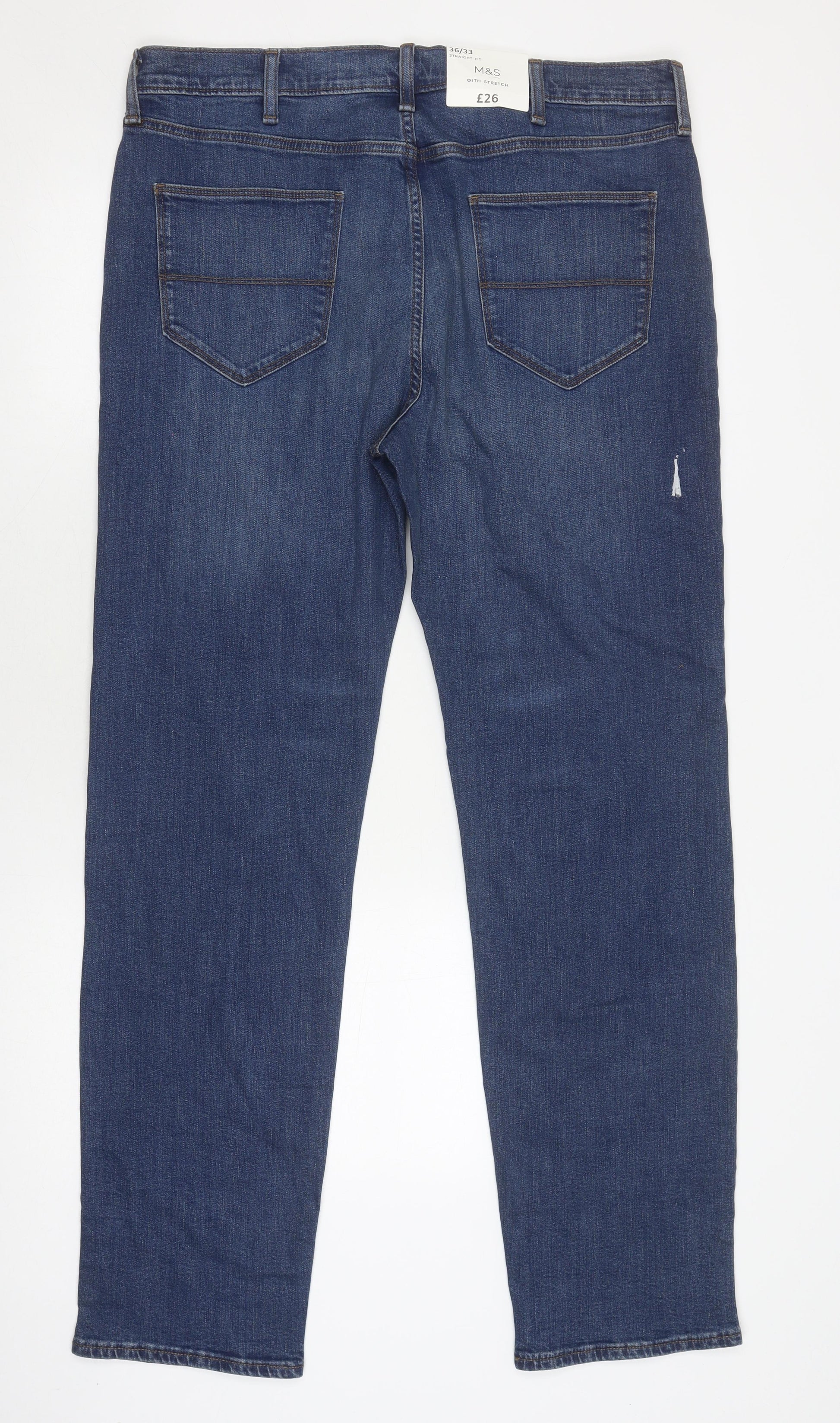 Marks and Spencer Men's Light Blue Straight Leg Jeans 36W 33L