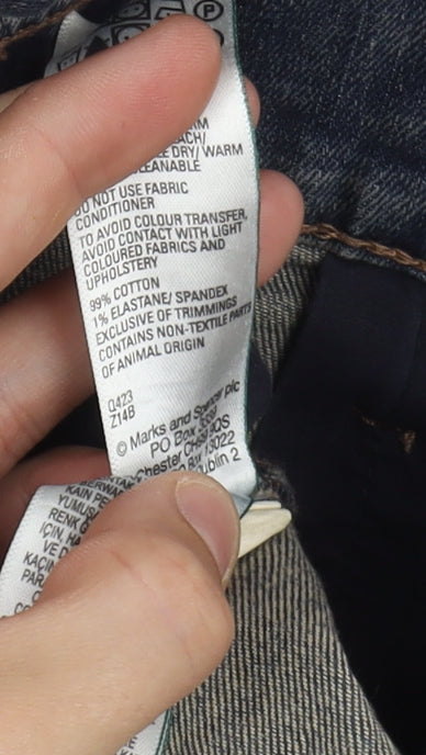 Step into style with these classic Marks and Spencer men's jeans in a sophisticated dark blue hue. Perfectly tailored for a regular fit, these straight-leg jeans offer a timeless look that complements any wardrobe. Expertly crafted from high-quality denim, these jeans are composed of 99% cotton and 1% elastane, which ensure both comfort and stretch, providing ease of movement throughout the day. The mid-rise and 36-inch waist cater to a flattering fit, making these the go-to option for casual outings and semi-formal events alike. Featuring a 5-pocket design and secure button and zip closure, these jeans boast practical details for everyday functionality. The clean, no-pattern appearance guarantees versatility, making these trousers a staple piece for versatile styling. Designed for modern men, they fit seamlessly into a myriad of seasonal wardrobes, from autumn through to spring; just pair them with your favourite shirts or jumpers for a chic ensemble. Despite being in excellent, pre-loved condition, they show minimal signs of wear, confirming their durability and enduring appeal. Machine washable and easy to care for, these jeans are ideal for the style-conscious individual who appreciates both form and function. Priced competitively, they represent fantastic value, inviting you to indulge in classic fashion without compromise. Whether dressing up for the weekend or heading out for daily errands, these Marks and Spencer jeans are ready to become your new wardrobe essential.