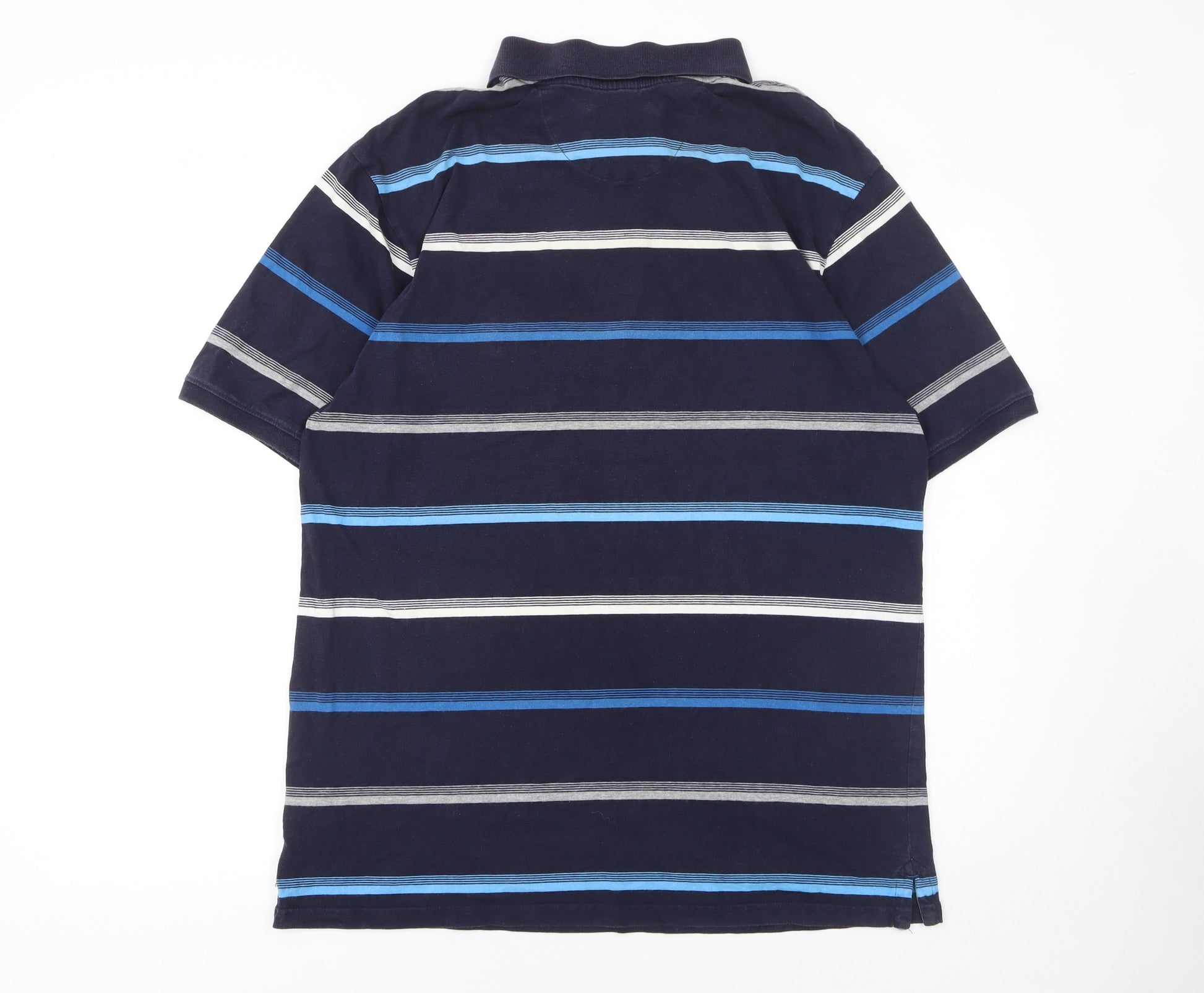 Marks and Spencer Blue Harbour Men’s Blue Striped Cotton Polo Shirt Size L