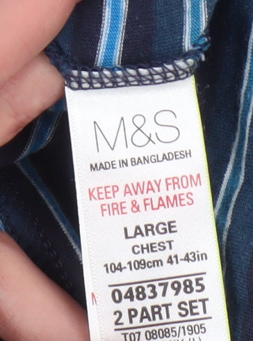 Discover the perfect blend of comfort and style with this Marks and Spencer Men's T-Shirt. Featuring a timeless blue striped pattern, this short-sleeve tee is crafted from soft, breathable 100% cotton, ensuring a comfortable fit throughout the day. The V-neck design adds a modern touch, making it suitable for a variety of casual occasions. Whether you're dressing it up with a blazer or keeping it relaxed with jeans, this versatile T-Shirt is an essential addition to your wardrobe. Perfect for all seasons, this shirt is an easy-care option that blends effortlessly with your existing attire. With its impeccable condition and classic look, this piece is an excellent choice for any style-conscious individual.