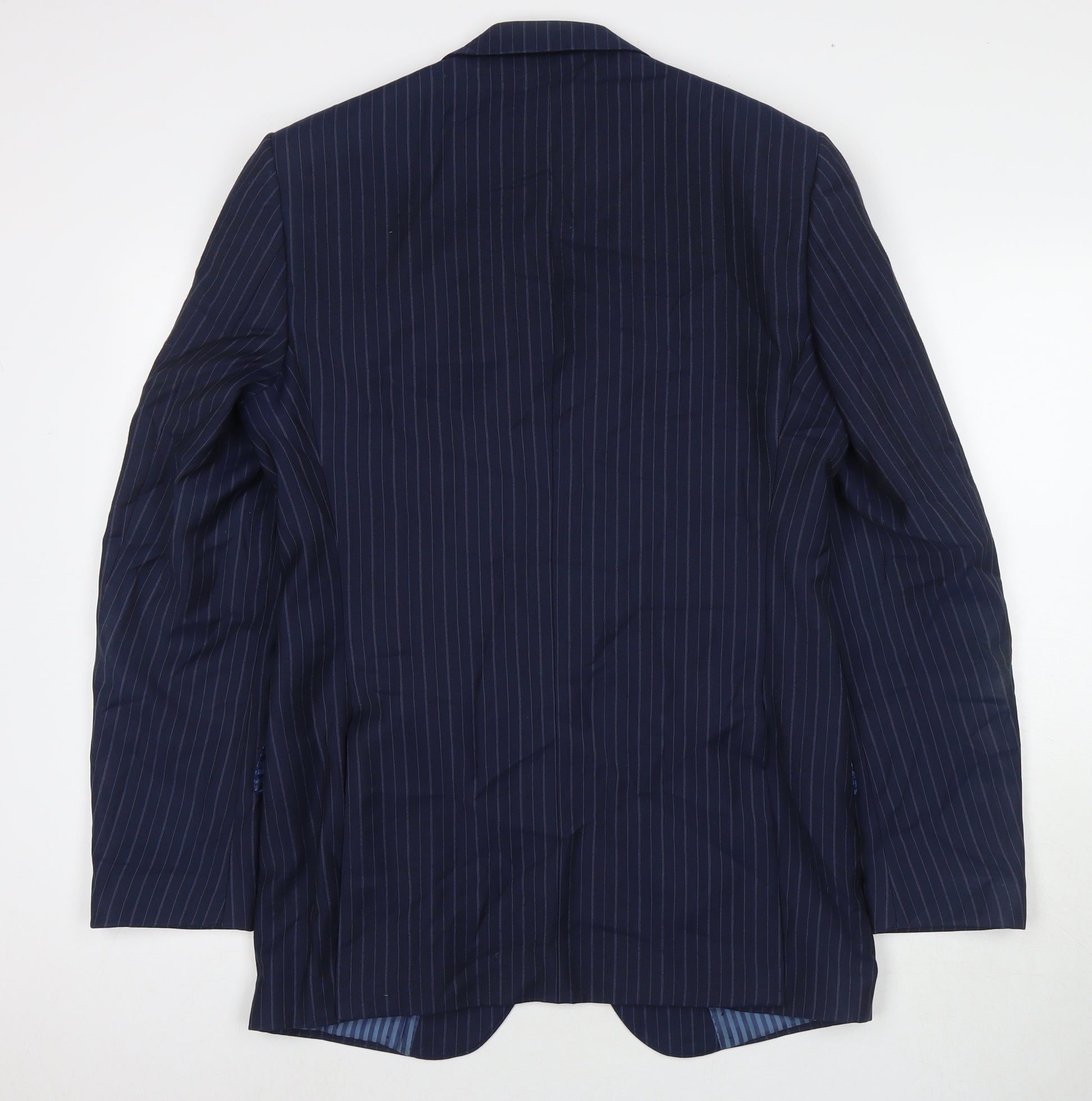Mens Blue Striped Wool Jacket Suit Jacket Size 38 Regular