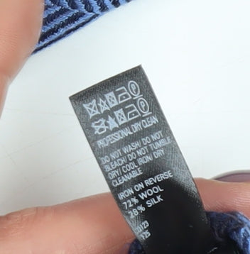 Elevate your formal attire with this exquisite Marks and Spencer Men's Slim Tie, crafted from a luxurious blend of wool and silk. The striking blue striped pattern adds a touch of sophistication, making it an ideal choice for both professional settings and special occasions. Designed for comfort and style, this tie is perfect for the modern gentleman. Its slim style exudes elegance, while the high-quality materials ensure a smooth and lasting wear. Whether you're attending a business meeting or a formal event, this tie is sure to make a lasting impression. A must-have addition to any wardrobe, it pairs perfectly with a variety of formal shirts and suits. Its excellent condition affirms its quality, despite minimal signs of wear, promising to be a reliable choice for years to come. Secure this versatile accessory today and step up your fashion game.