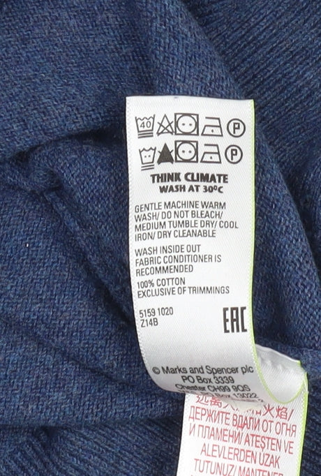 This elegant Marks and Spencer men's jumper in a sophisticated blue hue is the perfect addition to any wardrobe. Crafted from 100% pure cotton, it ensures breathability and comfort throughout the day. The classic V-neck design adds a touch of style, making it suitable for both casual outings and more polished occasions. With a regular fit, it complements your physique without feeling too restrictive, providing a comfortable wear from autumn through spring. The jumper features long sleeves, promising a warm embrace during colder months, yet remains lightweight enough for more temperate seasons. A timeless knit piece, its simple, no-pattern style allows for versatile pairing with jeans, chinos, or under a blazer for added flair. Quality machine washable care ensures easy maintenance and lasting durability, making it a practical choice for the modern man. In superb condition, this jumper offers great value with no visible wear and tear, ready for a new owner to appreciate its understated elegance. Perfect for those who value comfort and effortless style, this Marks and Spencer jumper embodies a blend of tradition and contemporary charm. Whether you're heading to a casual lunch or an informal office gathering, this jumper is sure to make a remarkable impression.