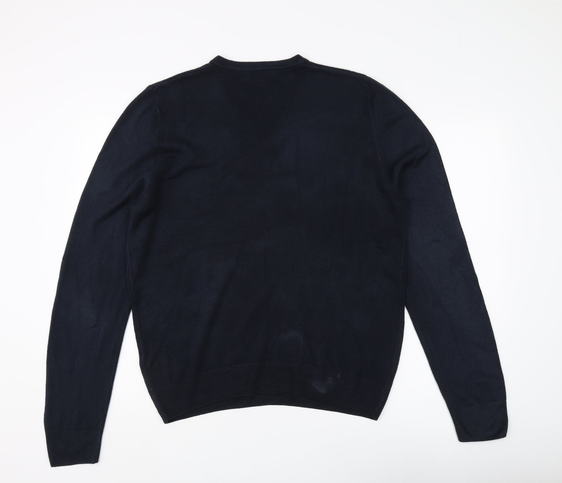 Marks and Spencer Men's Blue Cotton Crew Neck Jumper L