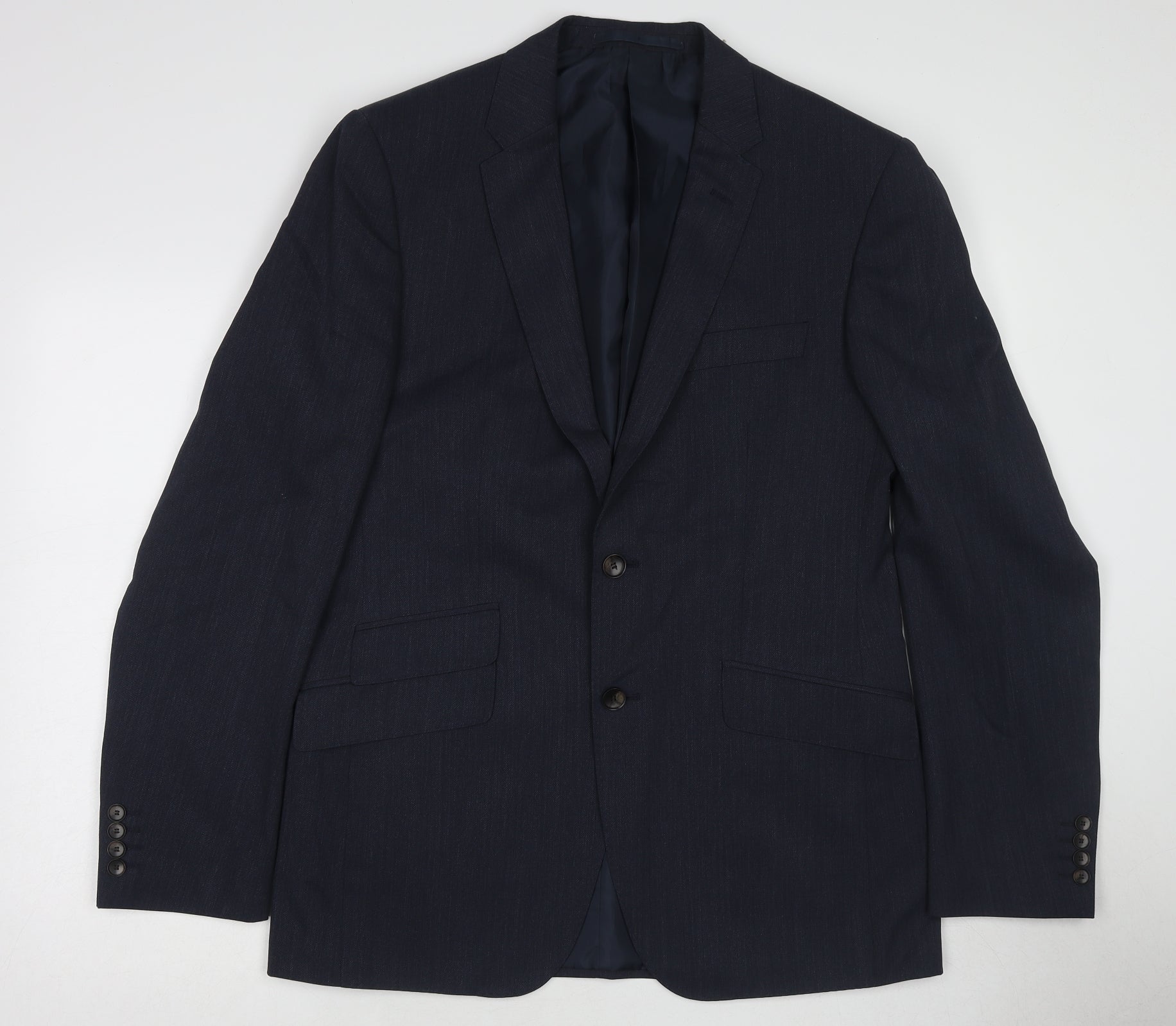 Mens Blue Wool Jacket Suit Jacket Size 44 Regular