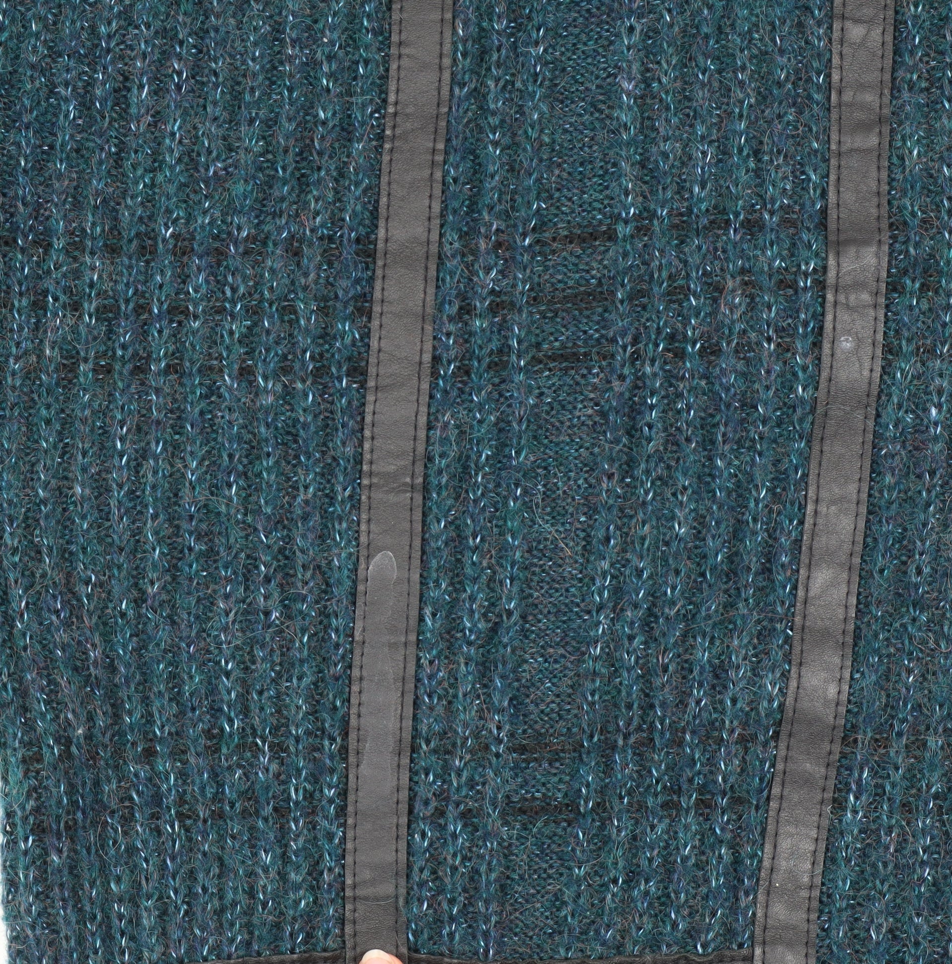 Step into timeless vintage style with this Marks and Spencer St Michael men's blue pullover jumper, crafted in the UK. Designed for comfort and warmth, its rich blue tone is complemented by subtle geometric knit patterns that create depth and visual interest. Finished with distinctive leather trim detailing on the front, this jumper represents the classic craftsmanship and design that St Michael is known for. Made from a cosy and durable blend of 32% acrylic, 20% wool, 22% viscose, and 17% polyester, this garment offers both warmth and softness, ensuring comfort during the chillier months. The 100% leather accents elevate its style, giving it a bold, slightly rugged edge that's perfect for casual, retro-inspired outfits. The chunky-knit texture and crew neck design make it versatile enough to pair with jeans for a relaxed look or trousers for a smarter casual finish.This relaxed-fit, long-sleeve jumper is ideal for autumn and winter wear, providing ample warmth without compromising breathability. It captures that effortless vintage charm from the St Michael collection, beloved for its durability and enduring appeal. Despite its vintage nature, the jumper is in excellent condition with only minimal signs of wear, keeping its colour and shape beautifully intact.Perfect for casual days, outdoor strolls, or weekend gatherings, this heavyweight jumper adds an authentic retro aesthetic to any wardrobe. Hand wash only care ensures longevity and preserves the premium textures of its mixed materials. With its unique leather-trim accents and soft knit construction, this distinctive Marks and Spencer jumper is an enduring piece that blends practicality with character — a true nod to British heritage fashion. Bring back the charm of classic knitwear with this standout piece ready to be enjoyed for seasons to come.