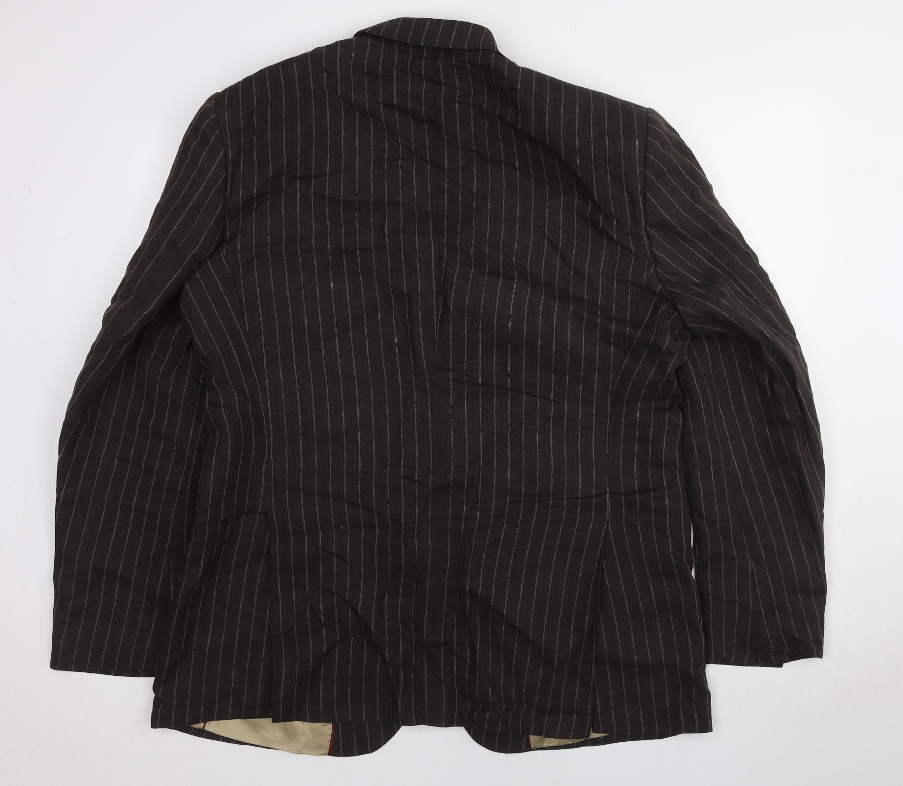 Mens Brown Striped Linen Jacket Suit Jacket Size 44 Regular