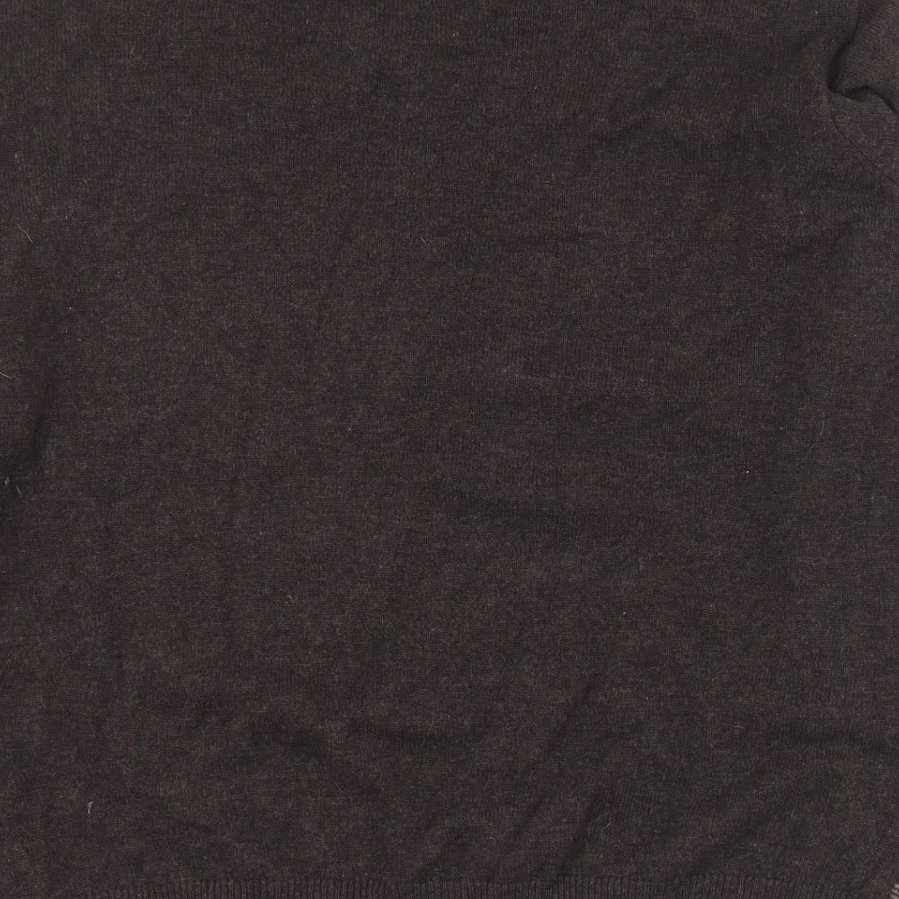 Mens Brown V-Neck Plaid Wool Pullover Jumper Size XL