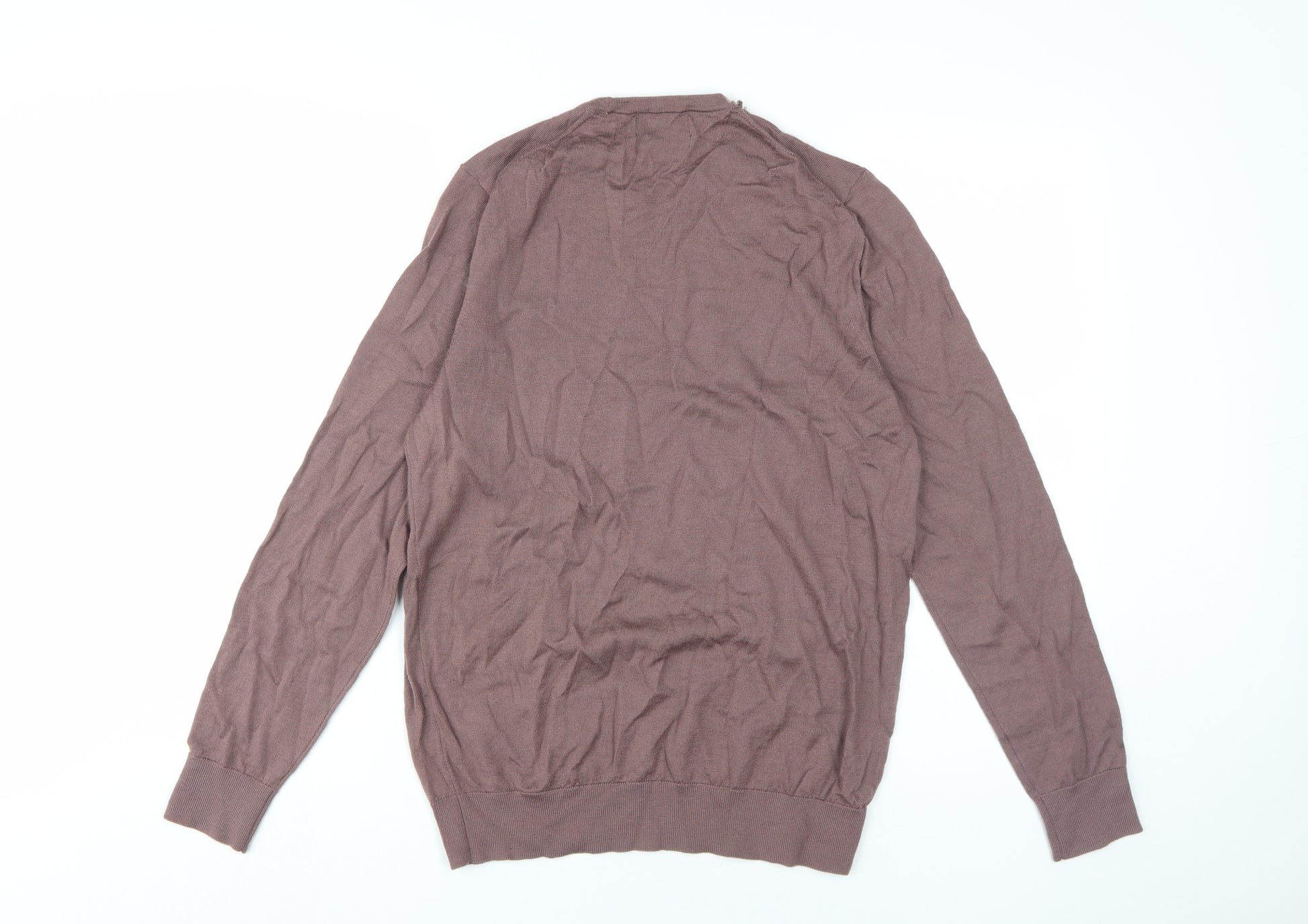 Introducing a timeless piece from the renowned Marks and Spencer brand, perfect for the discerning gentleman. This men's brown pullover embodies both classic style and comfort, making it an ideal choice for the autumn and winter months. Crafted from extra fine Merino wool, this jumper offers a luxurious feel and warmth, keeping you comfortable throughout the day.The crew neck design provides a versatile look that can be easily paired with jeans or trousers, making it suitable for casual outings or relaxed work environments. Its rich brown colour adds a sophisticated touch to your wardrobe, ensuring you stand out in style. The regular fit and long sleeves offer a comfortable yet flattering silhouette, allowing for effortless layering during colder days.While the jumper is primarily made of high-quality wool, it is essential to note the minor flaw on the sleeve, which can be easily repaired. Despite showing signs of wear, this piece remains in good condition and retains its elegance and charm.Perfect for those who appreciate classic knitwear with a modern twist, this Marks and Spencer pullover is a staple for any fashion-conscious individual's collection. Experience the blend of warmth and style with this exceptional jumper, providing the perfect balance between comfort and timeless appeal.