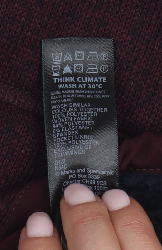 Embrace the cold seasons with this versatile Marks and Spencer Men's Burgundy 3-in-1 jacket, crafted thoughtfully to ensure both style and functionality. This jacket, fitting a medium size, is an excellent addition to any wardrobe with its rich burgundy hue, perfect for both casual and semi-formal occasions. Crafted entirely from polyester, it provides robust durability while being lightweight, making it an ideal choice for layering over your favourite knitwear or shirts.Featuring a modern stand-up collar and a practical full zip closure, this jacket is designed to keep you warm and snug during chilly days. The polyester lining offers additional comfort and warmth, with the outer shell also providing excellent insulation. Not just a coat but a statement piece, its mid-length style pairs seamlessly with jeans or trousers for a complete look.Equipped with practical pockets, this jacket ensures you have ample space to store essentials like your phone or wallet, making it not just stylish but also incredibly functional. The design maintains a consistent modern aesthetic, free from patterns, ensuring it remains timeless through changing fashion trends.Designed for autumn and winter, and machine washable for convenience, it's easy to care for while promising longevity. Whether running errands or enjoying a weekend adventure, this Marks and Spencer jacket is crafted to provide warmth, comfort, and a touch of sophistication. Elevate your seasonal wardrobe effortlessly with this meticulously designed jacket that combines quality and remarkable style.