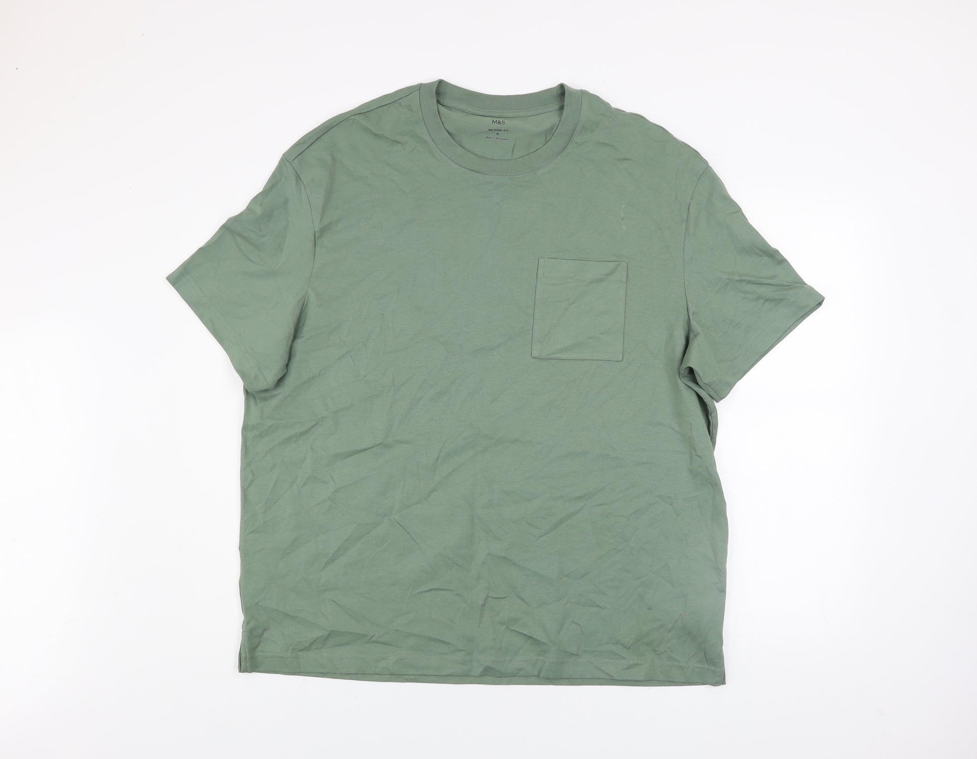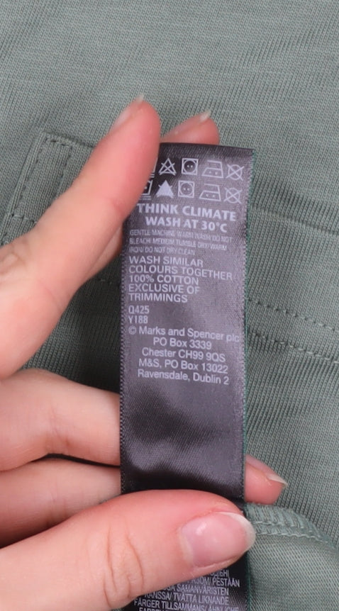 This Marks and Spencer Men's Relaxed Fit T-Shirt in soft sage green offers a timeless wardrobe essential designed for comfort and effortless everyday wear. Made entirely from 100% cotton, this jersey tee feels soft and breathable against the skin, making it perfect for spring and summer yet versatile enough for layering in cooler weather. The relaxed fit ensures ease of movement, while the neatly finished crew neckline and short sleeves deliver a classic shape that flatters a wide range of body types. A chest pocket adds a simple, practical detail that complements the minimalist, solid-colour design. Crafted with durable stitching and the brand’s commitment to quality, this T-shirt achieves both comfort and a clean modern style. Its cool, muted green tone pairs easily with denim, chinos or shorts for casual days, travel, or lounging at home. Though gently worn, it remains in very good condition with only a faint mark visible on the front that does not affect overall wearability or look. Machine washable for easy care, it’s the ideal low-maintenance staple for any contemporary wardrobe, offering value and everyday style backed by trusted Marks and Spencer craftsmanship. Perfect for men who appreciate simplicity, comfort, and understated fashion, this crew neck tee transitions seamlessly from season to season while maintaining its shape and softness wear after wear.