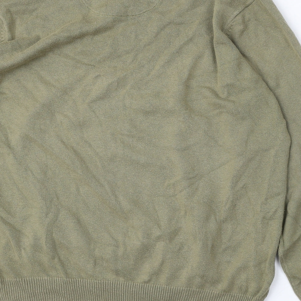 Mens Green V-Neck Cotton Pullover Jumper Size XL