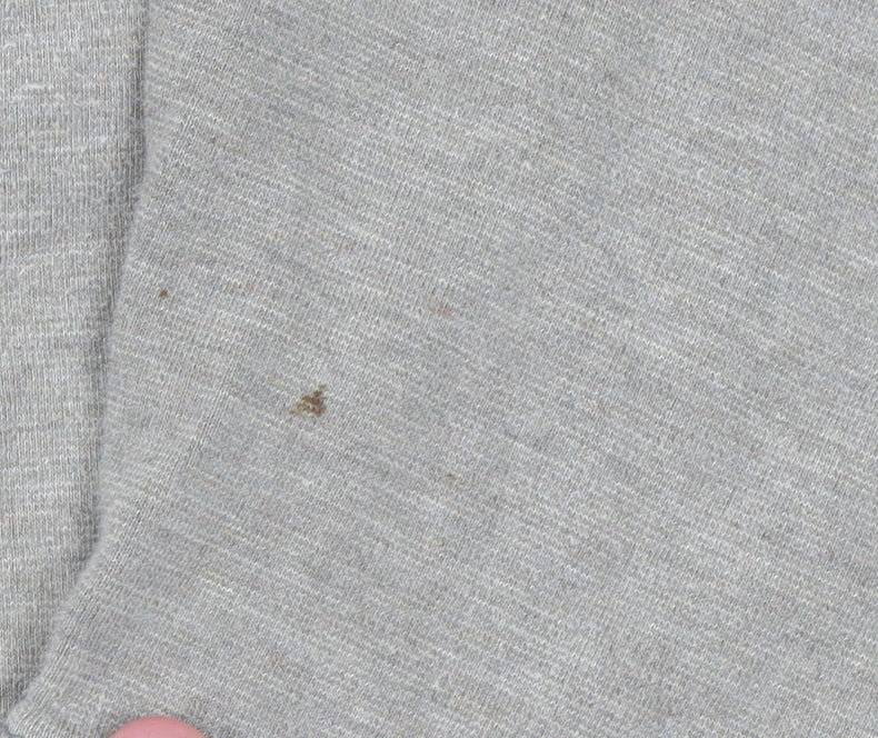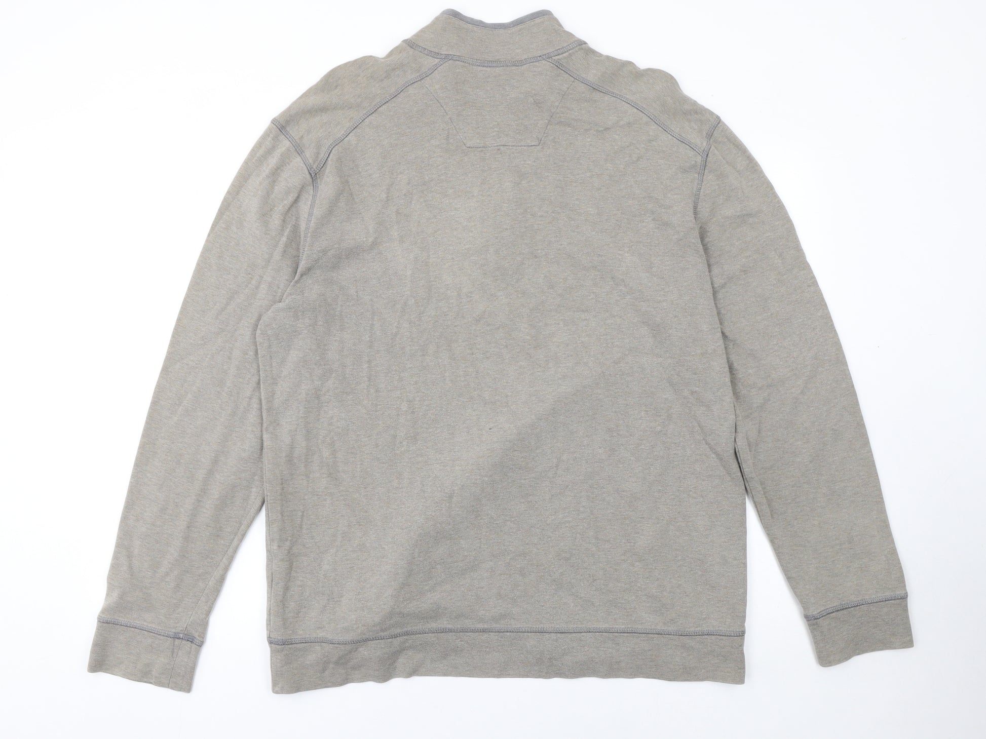 Refresh your casual wardrobe with this timeless Marks and Spencer men's grey sweatshirt, crafted from 100% pure cotton for a soft, breathable feel. Designed in a relaxed yet refined fit, this piece pairs classic comfort with simple, modern style. The sweatshirt features a 1/4 zip closure with a subtle leather-style zip pull, giving it effortless versatility whether you wear it zipped up for warmth or open for a laid-back look. The mock neck design ensures comfort during cooler days, while the plain grey tone makes it a perfect match with jeans, chinos, or joggers for any relaxed occasion. Ideal for layering through autumn, winter, and spring, the lightweight jersey fabric offers comfort without bulk. Built with everyday practicality in mind, this sweatshirt combines comfort and quality craftsmanship typical of Marks and Spencer clothing. Though pre-owned, it remains in good overall condition with a small, light stain visible on the sleeve, as shown. A great addition for those who value classic essentials, this long sleeve top provides a polished casual style that's easy to wear and easy to care for, being machine washable. Whether worn for relaxing at home, casual outings, or weekend walks, this grey 1/4 zip cotton sweatshirt offers a perfect balance of understated style and dependable comfort. Upgrade your everyday essentials with this dependable wardrobe piece from Marks and Spencer, a trusted name in quality menswear designed for enduring use and timeless appeal.
