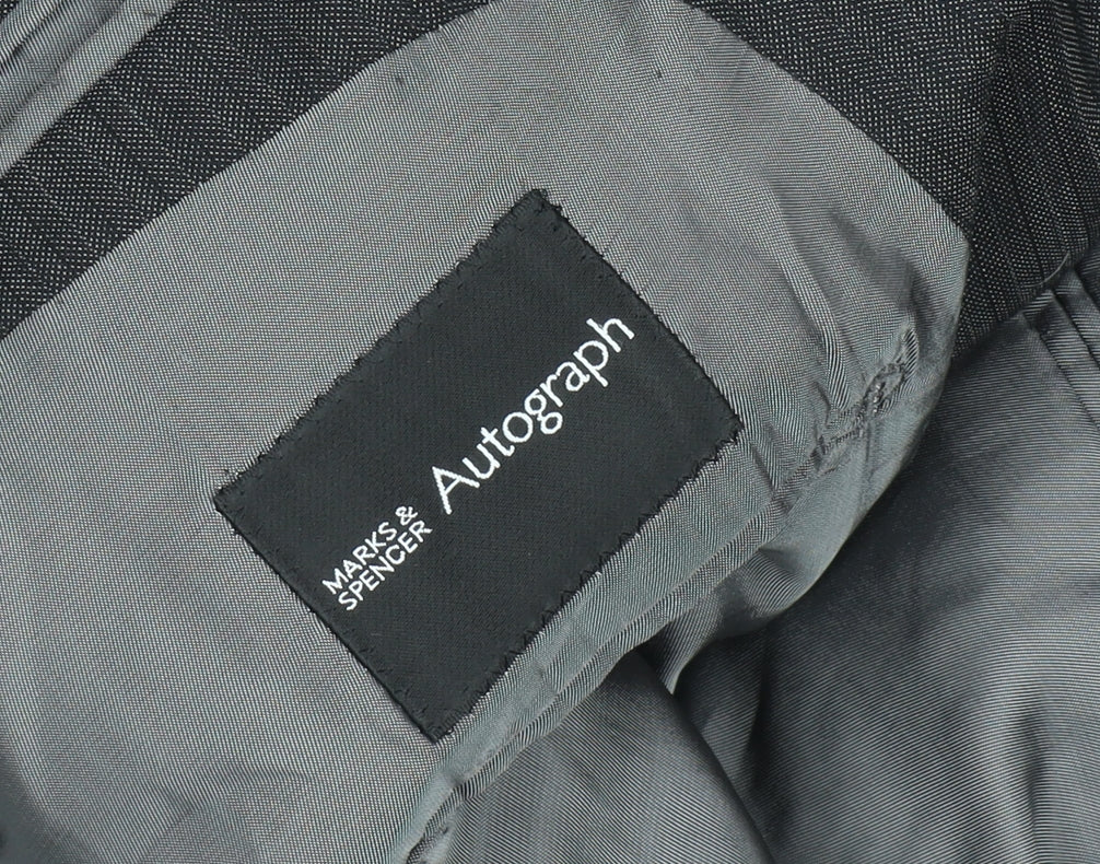 Elevate your corporate and formal wardrobe with this sophisticated Marks and Spencer men's grey blazer. Expertly crafted from a quality blend of 70% wool and 30% polyester, this blazer ensures comfort and warmth while maintaining its tailored structure. Designed for the classic man, this single-breasted piece features a timeless notch lapel and a versatile two-button fastening, perfect for business meetings or formal dinners. The jacket’s sleek, regular fit offers a modern silhouette without sacrificing ease of movement.This piece is part of the esteemed Autograph collection, renowned for its luxurious materials and exceptional design. Its single-vented back allows for enhanced comfort and ventilation, ideal for long days in the office or at events. The four-button cuff detailing adds a refined touch of elegance, while handy inner pockets provide practical storage for essentials.Finished in a neutral grey, this blazer effortlessly complements a variety of shirt and tie combinations, making it a versatile addition to any man’s wardrobe. Its polyester and viscose lining ensures added softness and smoothness, enhancing wearability throughout the day.Though pre-owned, the blazer is in excellent condition, showing minimal signs of wear with slight wrinkles easily resolved through pressing. Own a piece of distinguished fashion that blends craftsmanship with style at an unbeatable price. Ideal for the spring and autumn seasons, this Marks and Spencer blazer promises to deliver sharp looks and understated charm. Secure yours today and experience timeless elegance. Enjoy the seamless fusion of classic fit and modern tailoring with this exceptional blazer.
