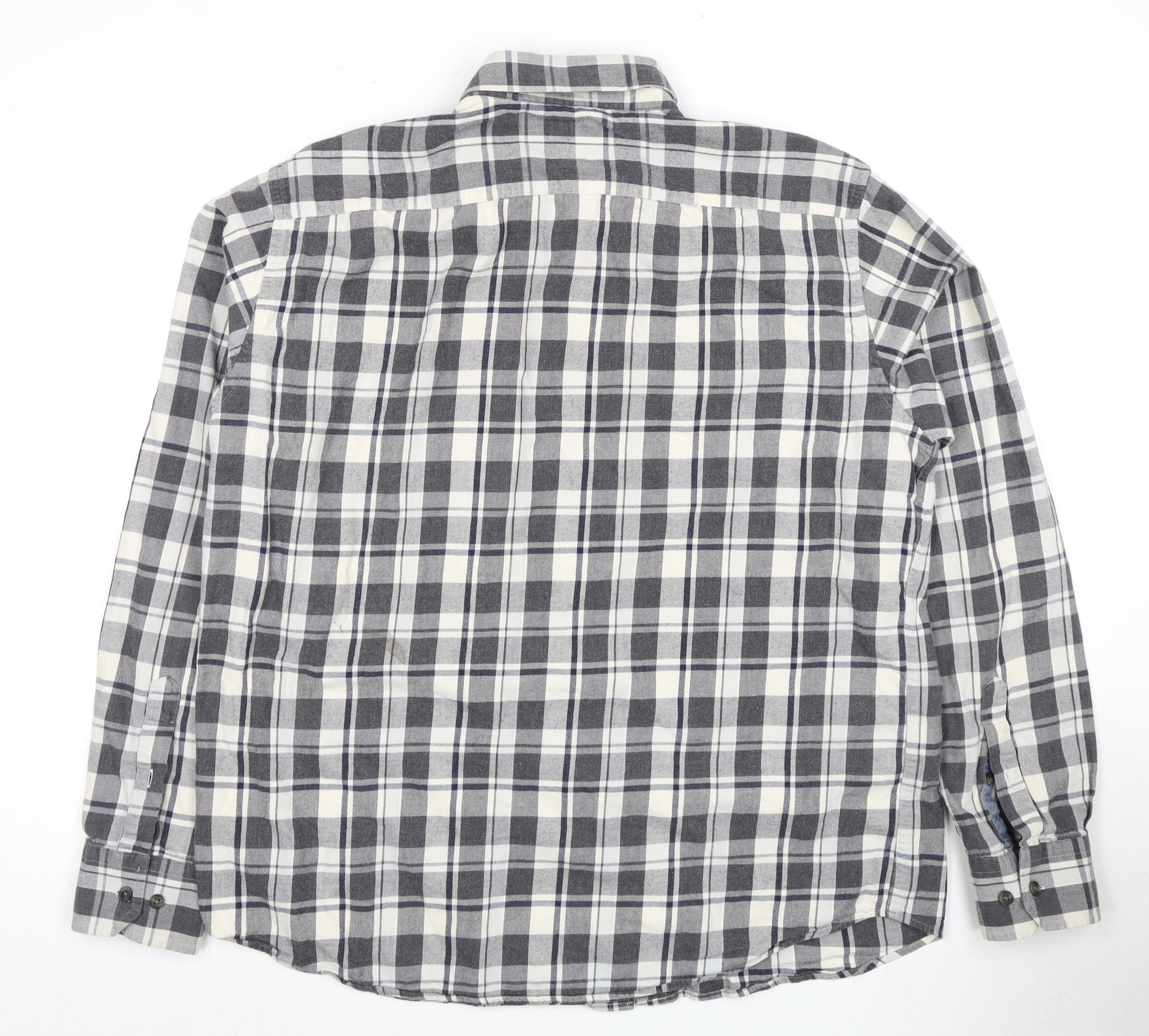 Step out in style with this classic Marks and Spencer Men's Check Shirt, tailored for the modern man. In an inviting grey colour, this shirt is a perfect addition to your casual wardrobe. Designed in a size large, it fits comfortably, providing a smart yet relaxed appearance. Made of 100% cotton, the fabric is not only soft against the skin but also ensures breathability, making it suitable for all-season wear. The long sleeves add a hint of sophistication, while the button-down collar style maintains its timeless appeal. Practical and stylish, this shirt promises to make you look your best whether you're heading to a casual outing or a laid-back office environment. The button closure provides a clean and neat finish, making it easy to pair with your favourite jeans or chinos. With its classic check pattern, it assures a refined and timeless look that never goes out of style. Machine washable for your convenience, it ensures easy garment care. Although the shirt has been previously owned, it is in excellent condition with no visible defects, guaranteeing satisfaction. Affordable yet high in quality, this grey check shirt is priced reasonably at £15.00, a fantastic value for such a versatile piece. Treat yourself or a loved one to this wardrobe essential today.