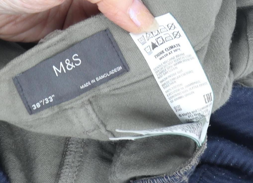 These Marks and Spencer chinos offer a timeless style with versatile functionality, crafted specifically for men who seek comfort and casual elegance. Made from a robust canvas fabric of 98% cotton and 2% elastane, these trousers are designed for ease of movement and durability. The classic grey tone ensures adaptability to various casual occasions, from a relaxed day at the office to a leisurely outing. Additionally, these trousers feature a regular fit that accommodates a variety of body types, employing a flat front design and mid-rise waist for added comfort and traditional appeal. The straight leg style offers a contemporary yet classic silhouette that pairs nicely with a range of footwear, from loafers to sneakers. Accentuated with five-pocket design and secure button and zip closure, they provide practical storage space whilst maintaining a sleek appearance. Balancing utility with aesthetics, these chinos present comfort-focused features including pockets for daily essentials and breathable material for warm spring and summer days. Machine washable for easy care, these trousers are designed to retain their excellent condition after countless wears. Ideal for the modern man, these chinos are a wardrobe staple that effortlessly blend practicality with effortless style, perfect for those seeking functionality without sacrificing fashion.