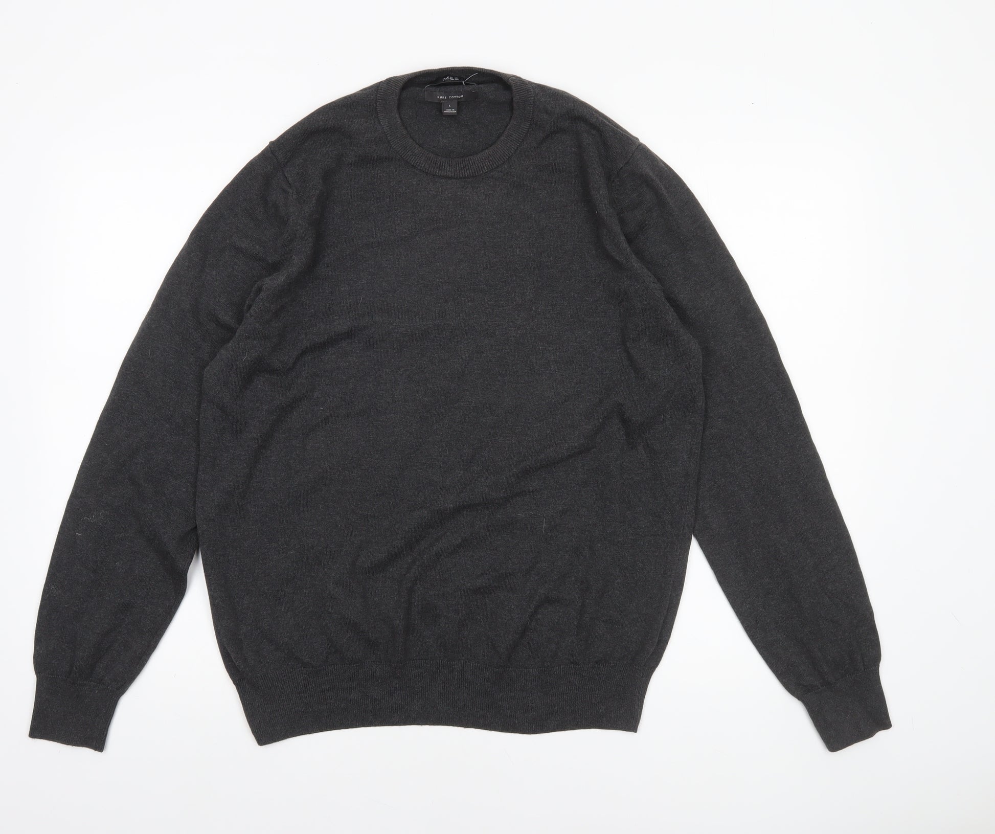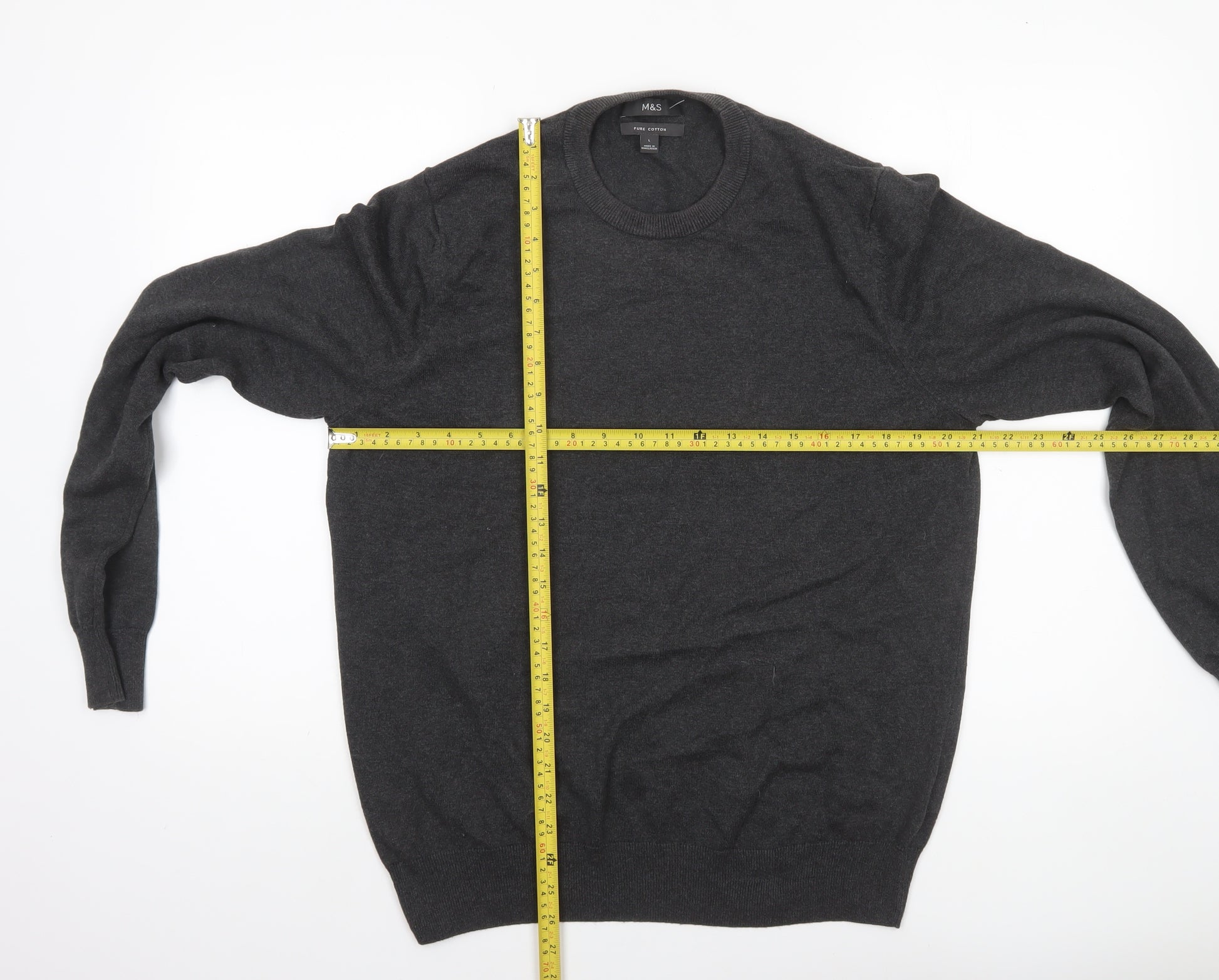 Men's Grey Cotton Crew Neck Jumper L Classic Fit
