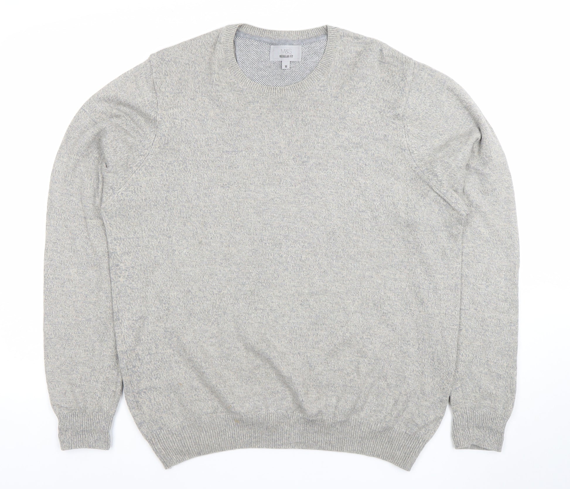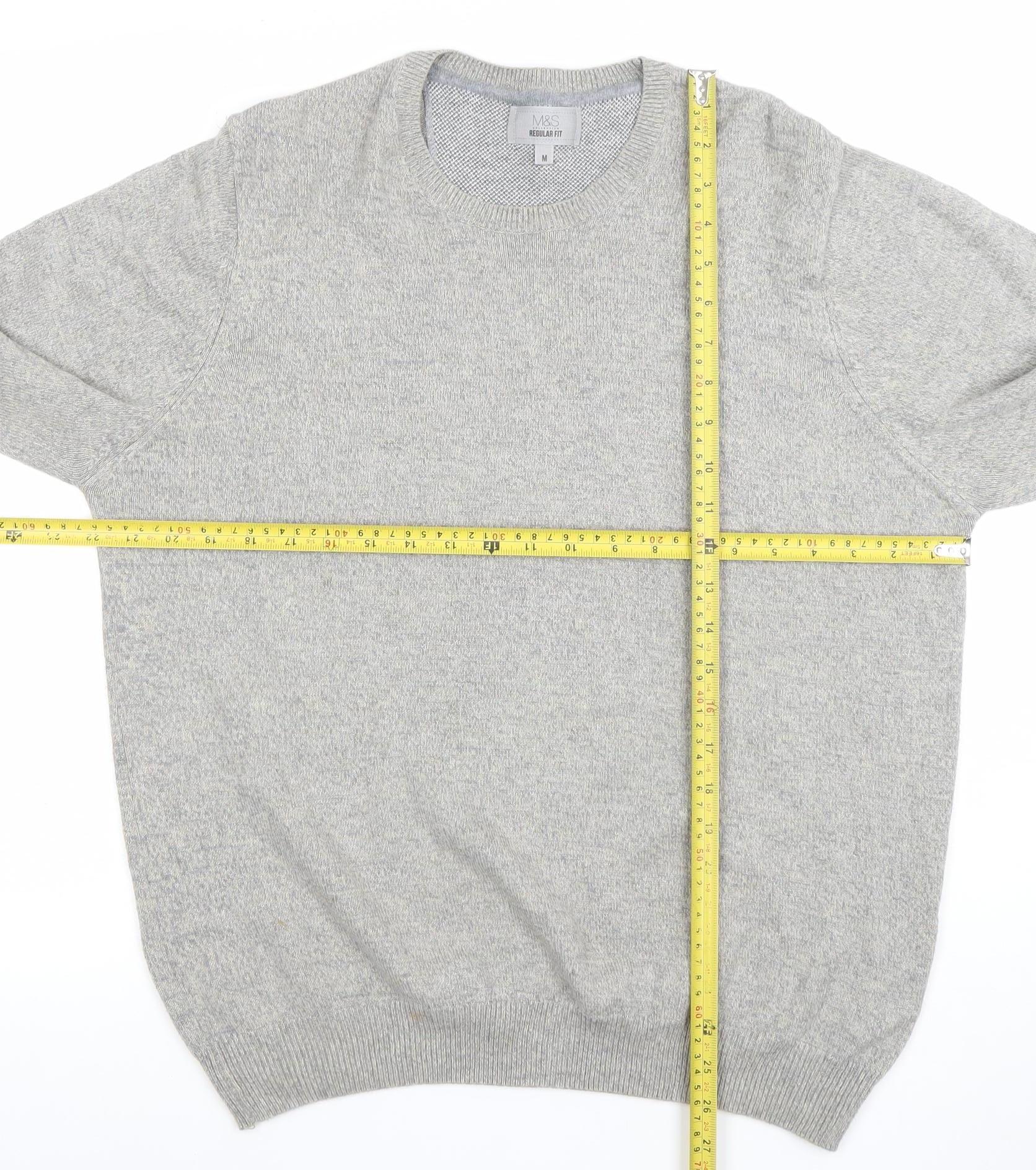 This Marks and Spencer Men's Regular Fit Jumper is an effortlessly classic wardrobe essential, crafted from 100% cotton for exceptional comfort and wearability. Presented in a versatile grey tone, the design offers understated style and practicality, perfect for layering during cooler seasons or wearing solo in transitional weather. The crew neckline and ribbed cuffs and hem maintain a timeless silhouette, while the knit texture provides a soft yet durable feel. The lightweight cotton construction ensures breathability, making it comfortable for everyday wear across multiple occasions. Ideal for casual outings, workwear layering, or travel, this jumper delivers both quality and reliability associated with Marks and Spencer craftsmanship. The medium size fits true to its regular cut, featuring a flattering fit across the shoulders and torso without compromising on comfort. Suitable for autumn, spring, and winter, this piece complements jeans, chinos, or tailored trousers alike, offering impressive versatility. The minimalist, no-pattern design appeals to anyone who prefers classic style with a contemporary edge. This lightly worn jumper remains in excellent condition with no visible flaws, showcasing the durability and quality of its cotton knit fabric. Machine washable for easy care, it promises long-lasting wear. A dependable and stylish choice, this jumper brings together texture, comfort, and the refined look characteristic of Marks and Spencer menswear. Whether dressing for a relaxed weekend or smart-casual gathering, it's a piece that adds polish to any outfit while maintaining effortless comfort and simplicity. Invest in this timeless grey cotton jumper to enhance your everyday wardrobe with understated sophistication and unmatched comfort.