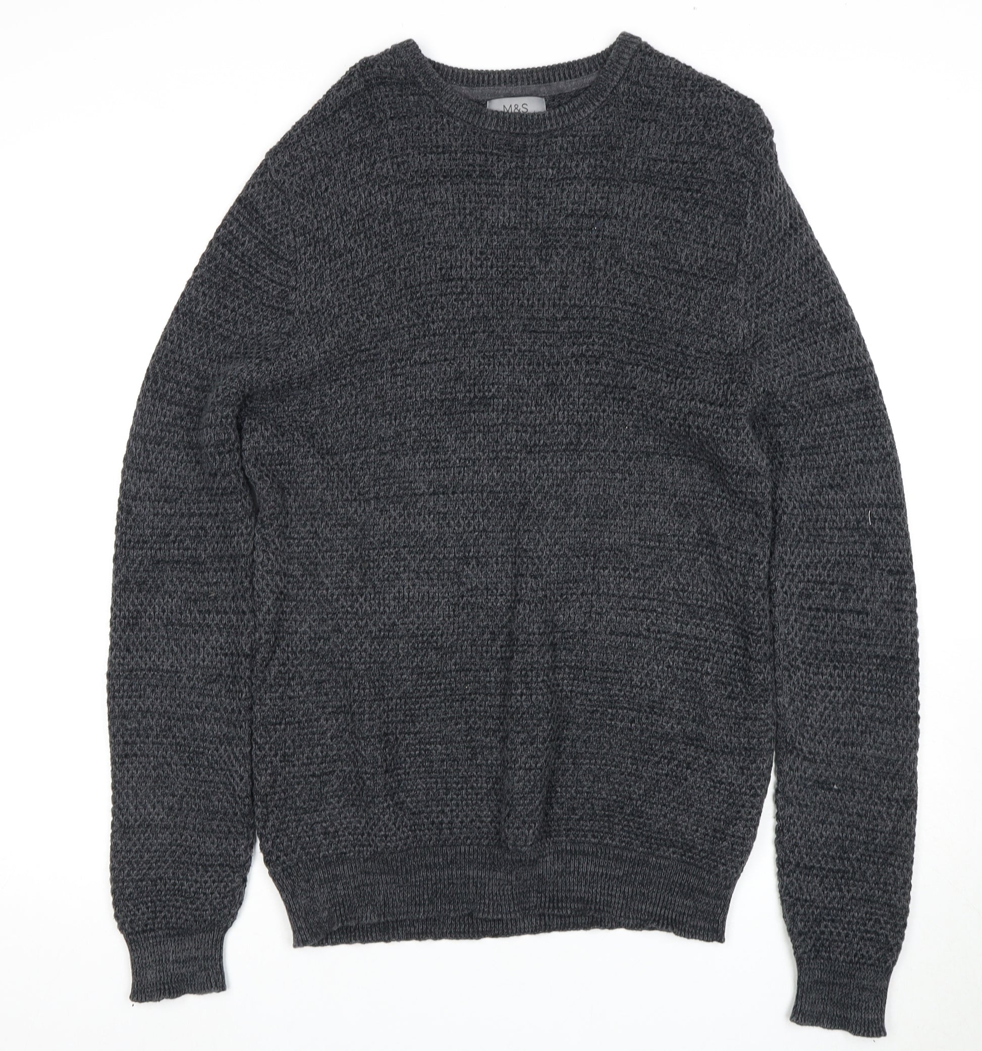 Marks and Spencer Men's Blue Cotton Crew Neck Jumper L