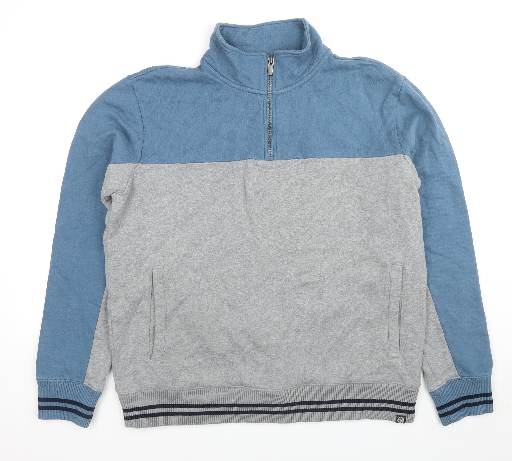 Mens Grey Cotton Pullover Sweatshirt Size XL - Colourblock Pattern