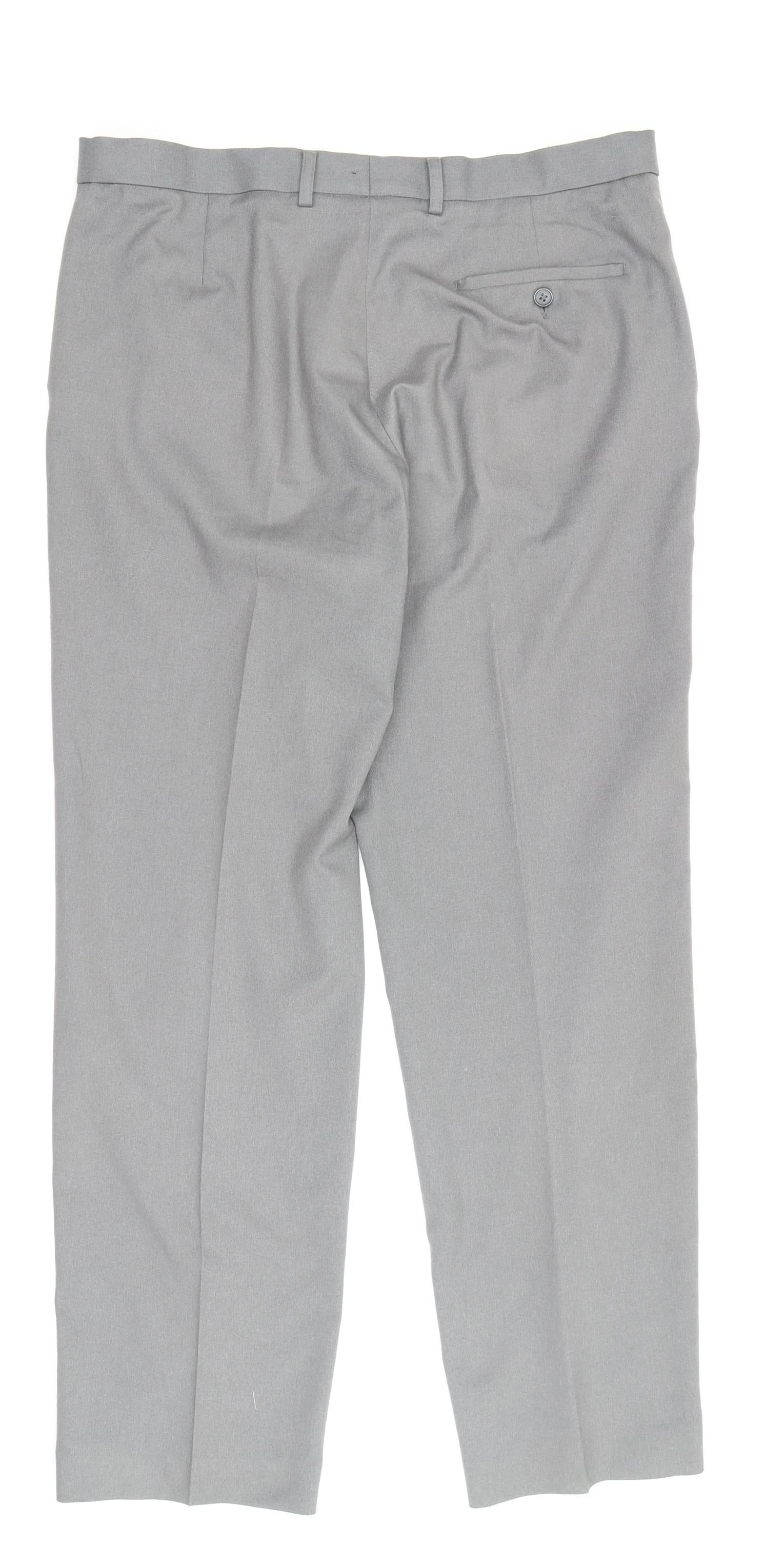 Elevate your wardrobe with these classic grey dress pants from Marks and Spencer, designed to offer timeless elegance for every occasion. Crafted from durable polyester and viscose, these trousers are tailored to provide a regular fit, ensuring you look polished and feel comfortable throughout your busy day. The mid-rise offers a flattering silhouette, making these pants an ideal choice for the modern man who values both style and functionality.These trousers feature a flat front with a sleek button and zip closure, creating a clean-line look perfect for workwear or semi-formal occasions. With belt loops included, you can add your favourite belt to accentuate your waistline or personalise your look. The straight leg style ensures a versatile fit that pairs seamlessly with loafers, brogues, or your well-loved dress shoes.Designed for practicality without compromising on style, these pants include slash pockets for easy storage, offering both convenience and utility. Ideal for autumn and spring, their breathable fabric keeps you well-suited for transitional weather. Machine washable materials ensure that these trousers remain a staple in your wardrobe year-round, offering easy care for the on-the-go gentleman.In excellent condition, these trousers exhibit only minimal signs of wear, making them a worthy addition to any well-curated collection. Whether you're attending a meeting, heading to the office, or enjoying a more formal evening out, these Marks and Spencer dress pants deliver the confidence-inspiring style you need. Perfectly priced to provide exceptional value, they offer the classic sophistication and reliability that have become synonymous with the brand.