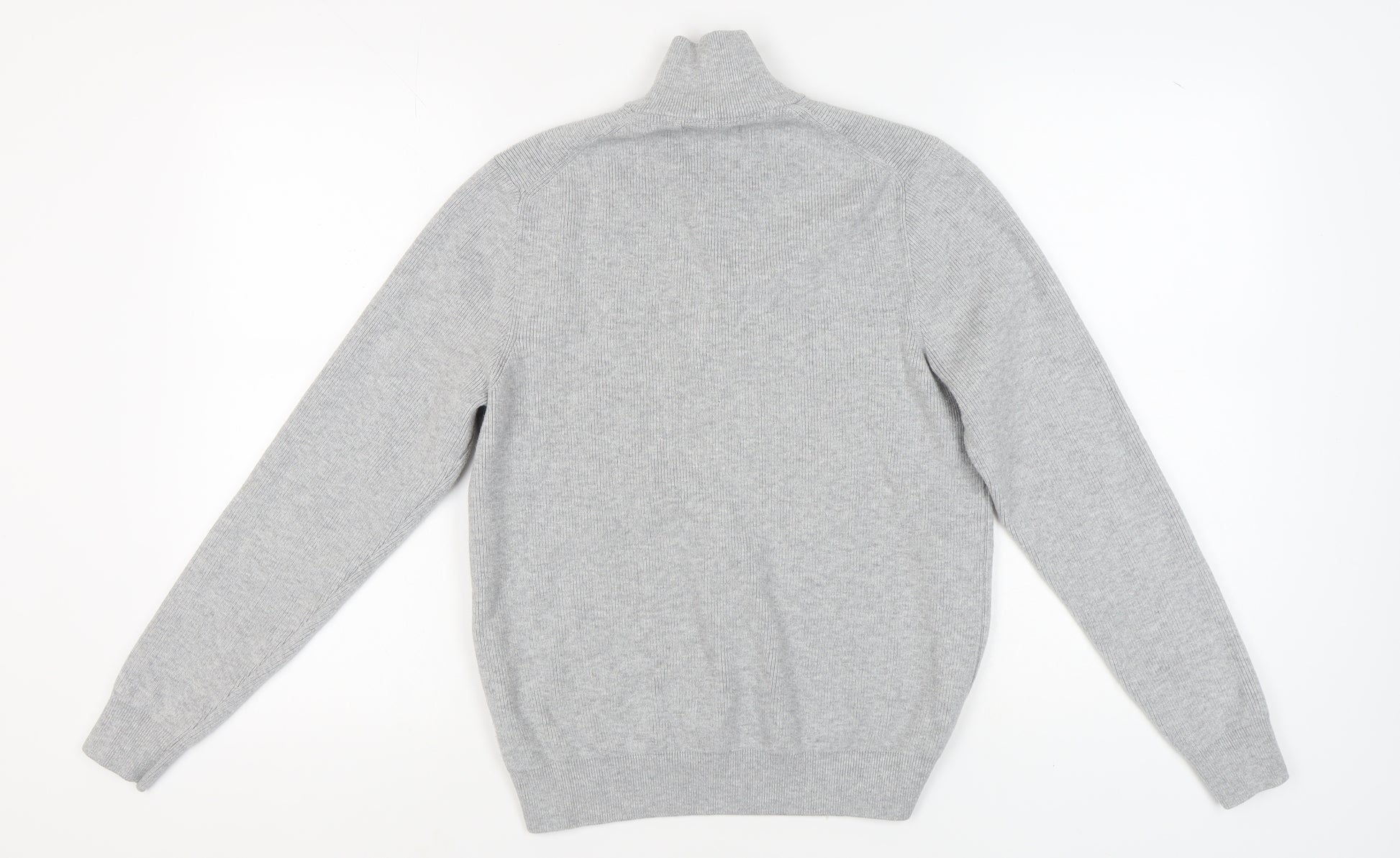 Elevate your winter wardrobe with this stylish and versatile grey pullover jumper from Marks and Spencer. Designed with comfort and style in mind, this jumper features a high neck and half-zip for easy wear and a snug fit, making it the perfect choice for those chilly autumn and winter days. Crafted from a cotton blend, this jumper provides a soft touch, ensuring you stay cosy while looking effortlessly chic. The tight-knit fabric guarantees durability and adds a touch of sophistication to your casual look.Ideal for a casual day out or a relaxed evening gathering, this jumper pairs perfectly with jeans or chinos, offering a smart-casual appeal. Whether you're heading to the office or enjoying a weekend travel getaway, this jumper is a must-have addition to your wardrobe. Its regular fit provides a comfortable silhouette, while the machine washable fabric makes care and maintenance a breeze.Upgrade your collection with this modern essential that combines classic design elements with contemporary style, ensuring you stay on trend throughout the season.
