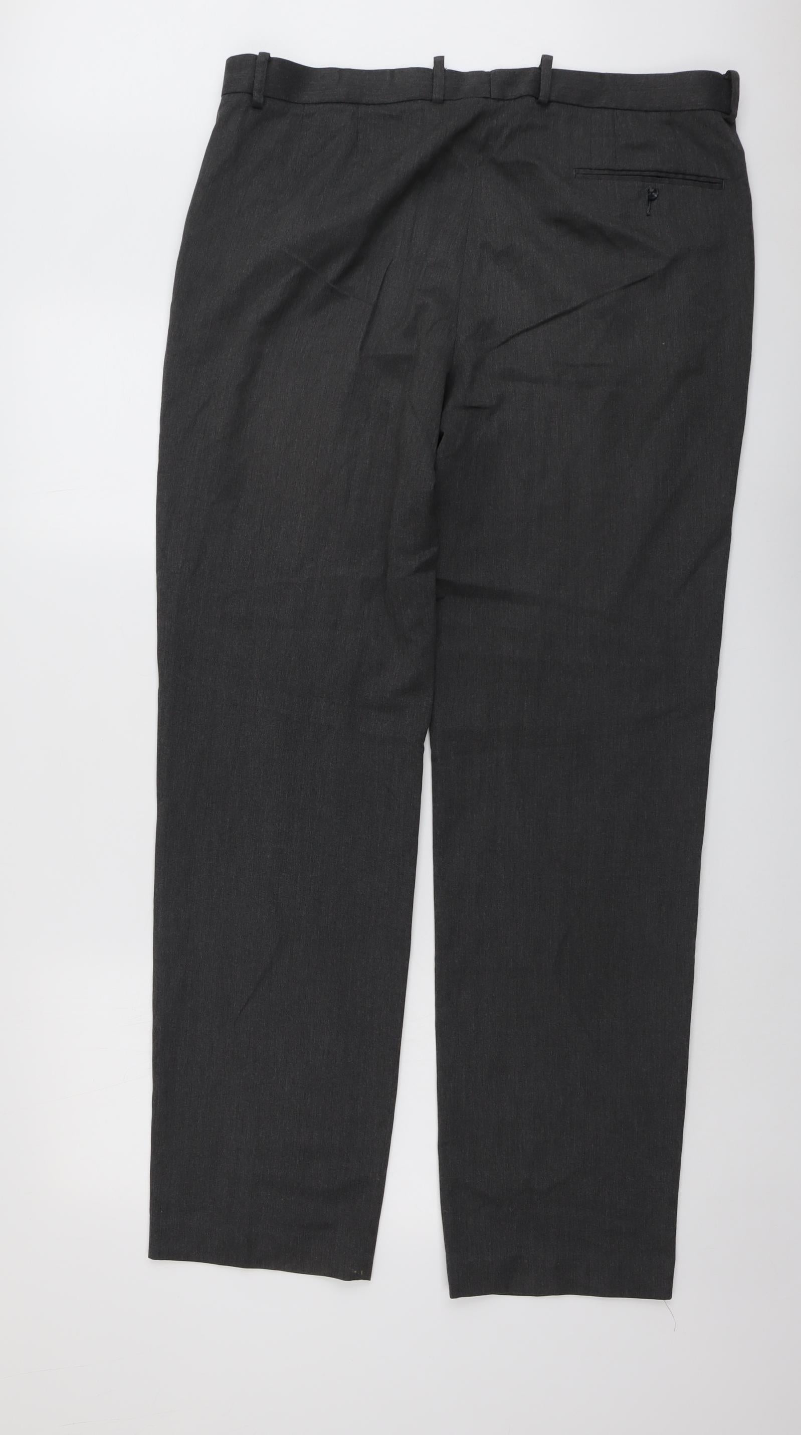Mens Grey Polyester Trousers Size 38 in L35 in Regular Button